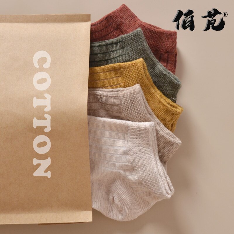 5 Double Sox Children's cotton Short Sox Japanese Shallow Mouth Pure Color Deodorant Large Size Mid Simeters Socks Female Socks Spring Summer Student Invisible Socks