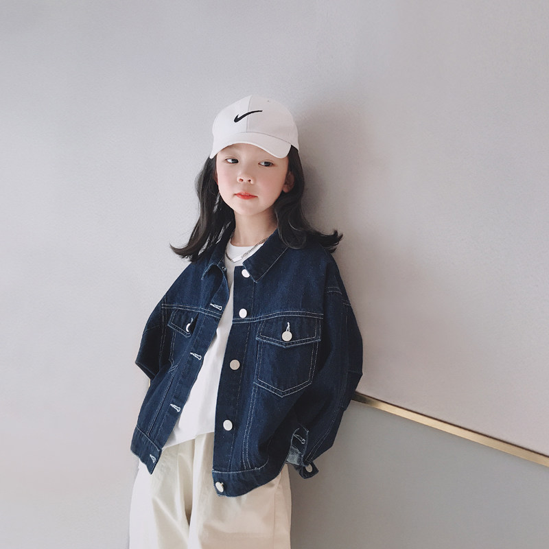 Ai Shangduo girls denim jacket 2022 spring wear new style middle and big children casual foreign korean version of the children's retro top