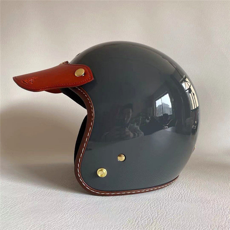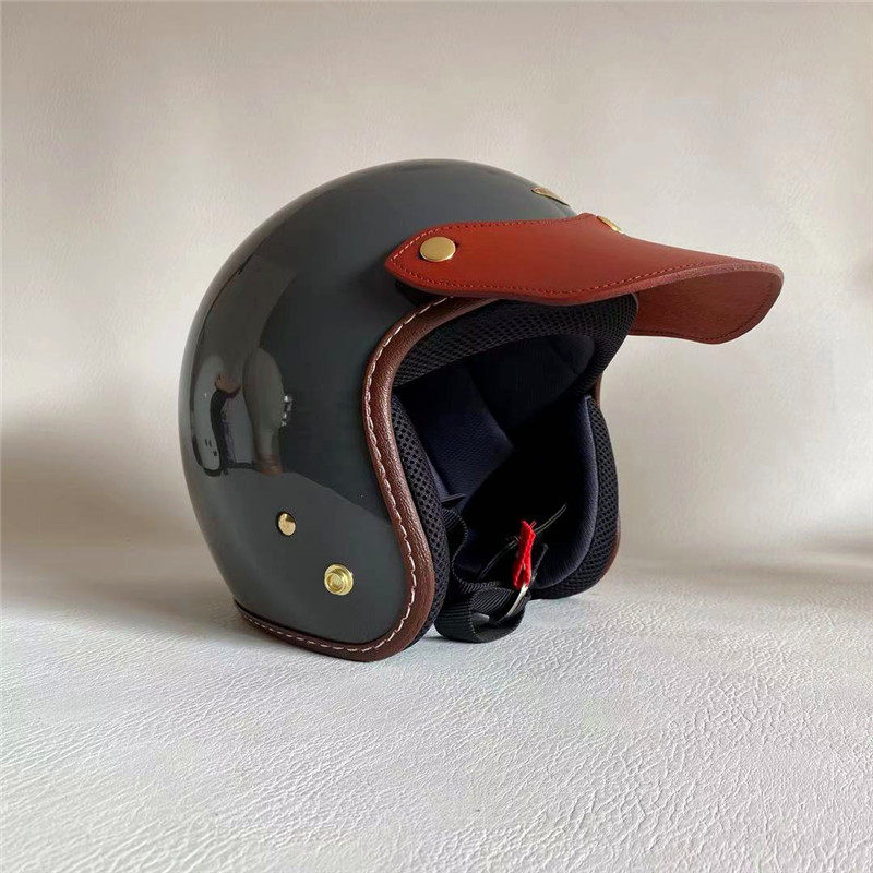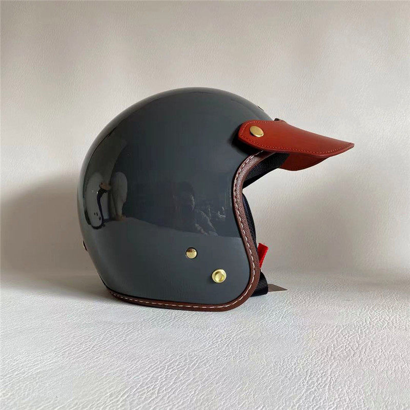 Spot Retro Locomotive Safety Helmet Genuine Leather Peak 3 4 and half armor Three points by buckle sunscreen Shading Cow Leather Hat Tongue