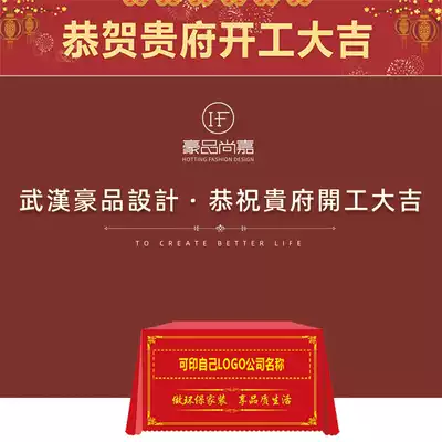 Advertising company opening custom decoration commencement ceremony Full set of banners Canvas strips Big red tablecloth background cloth