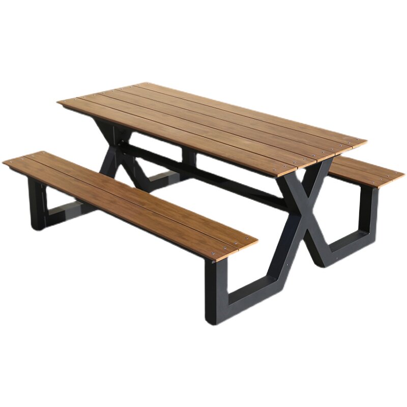 Outdoor beach leisure retro anti-corrosion table and chair combination one-piece family party dining table 4 people 6 people light luxury aluminum alloy