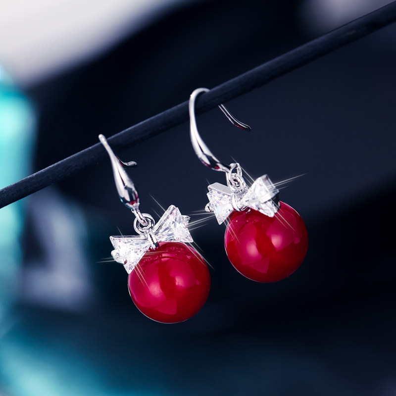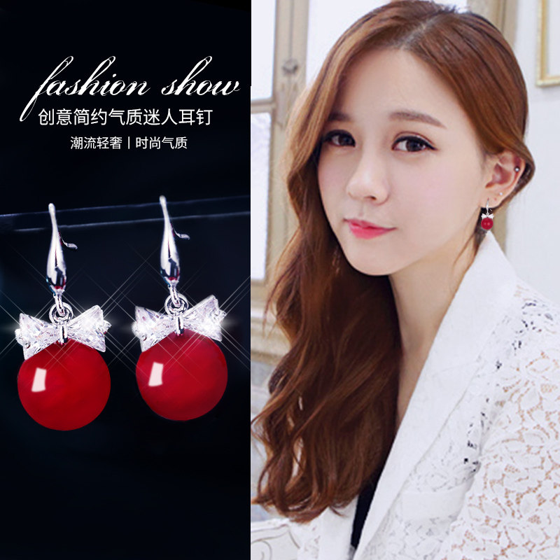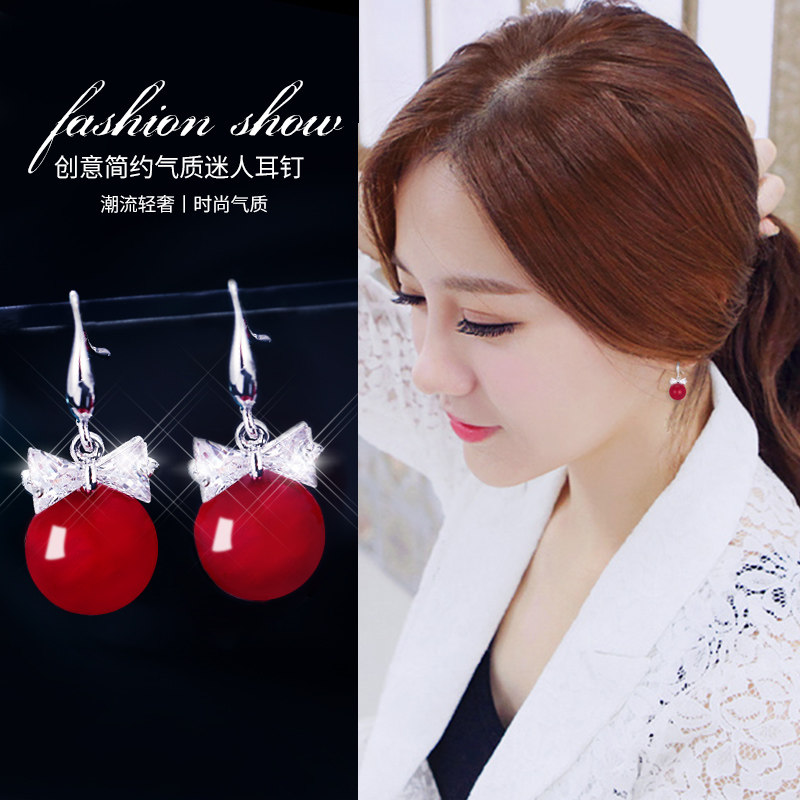 Earring network red with high - grade atmospheric red pearl ear nail 2021 new tide jade high - grade temperament ear nails