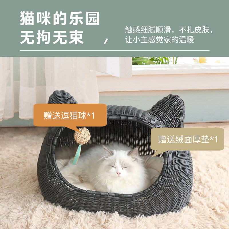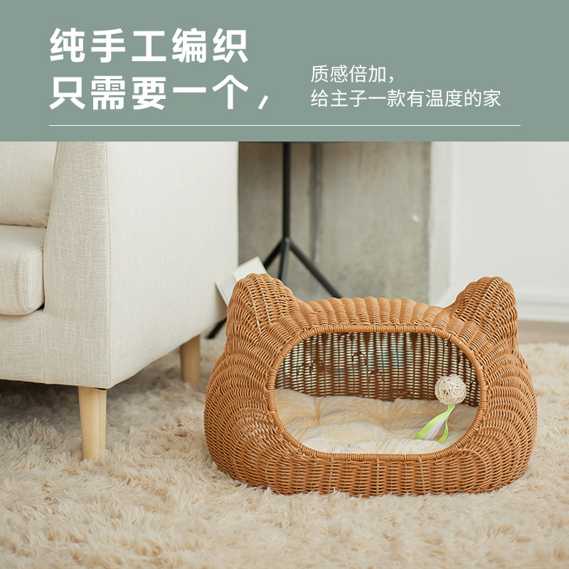 catsle rattan chiccat owl season universal summer cat house detachable washout kennel kitty pet supplies house villa