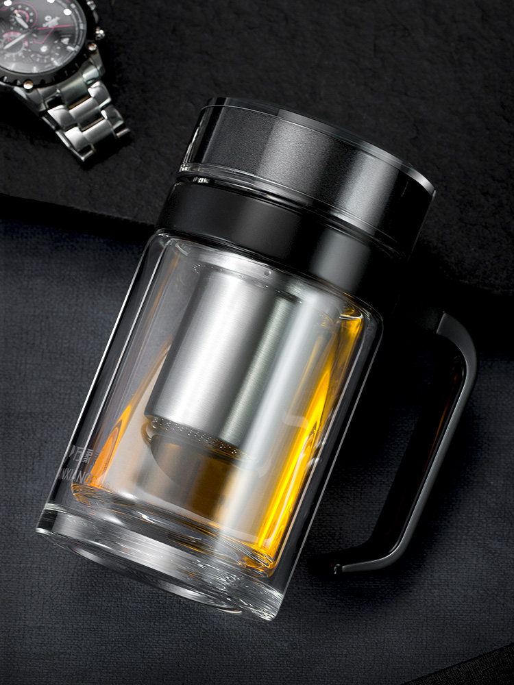 Vientiane glass tea cup with the model Office Home with strainer oversized double layer thermal insulation tea leak tea water cup