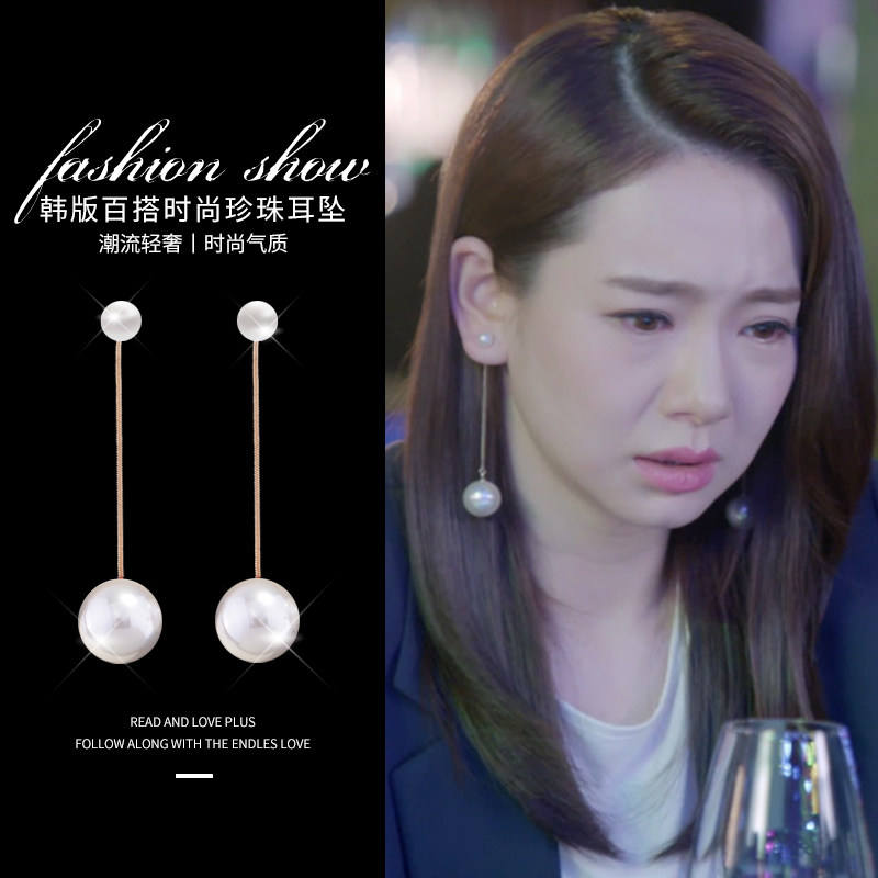 Earrings for women 2022 new tide sea pearl long earrings net red with the same sense of luxury light luxury glass earrings