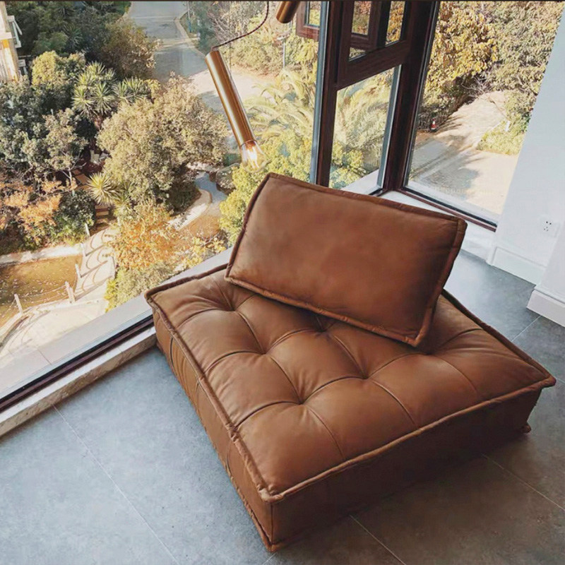 Piedmont leather sofa Nordic Italian minimalist small apartment living room without armrests single tofu cube sofa
