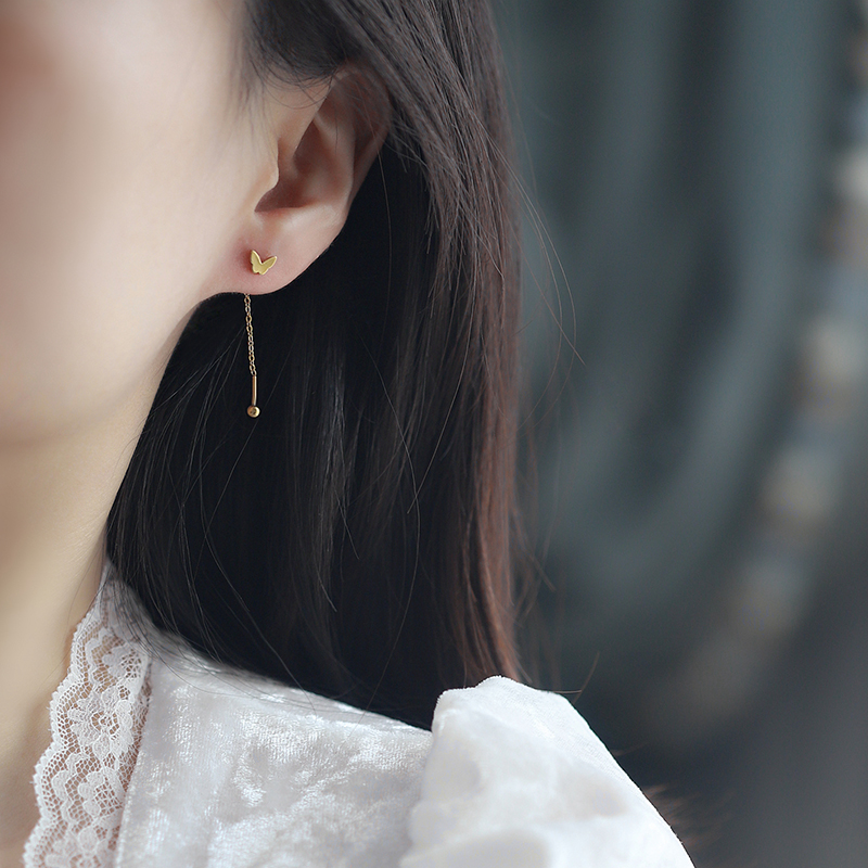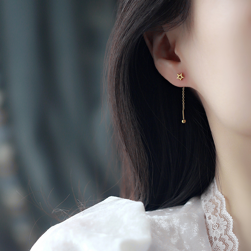 Golden Streaming Su Earrings Spring Summer Long Version Temperament South Korea Nets Red Titanium Steel Earrings Women 2022 New Wave Advanced Sensation
