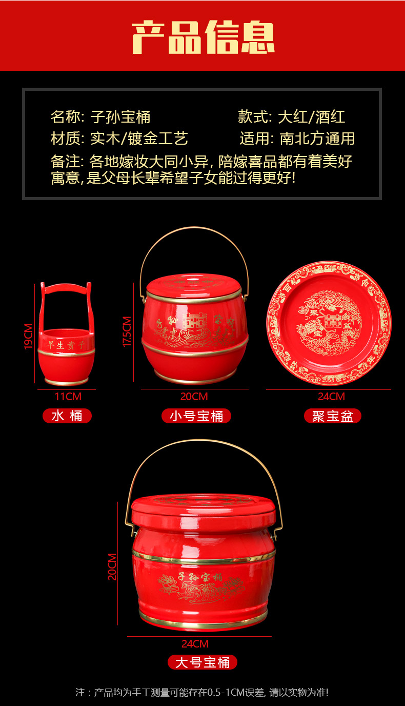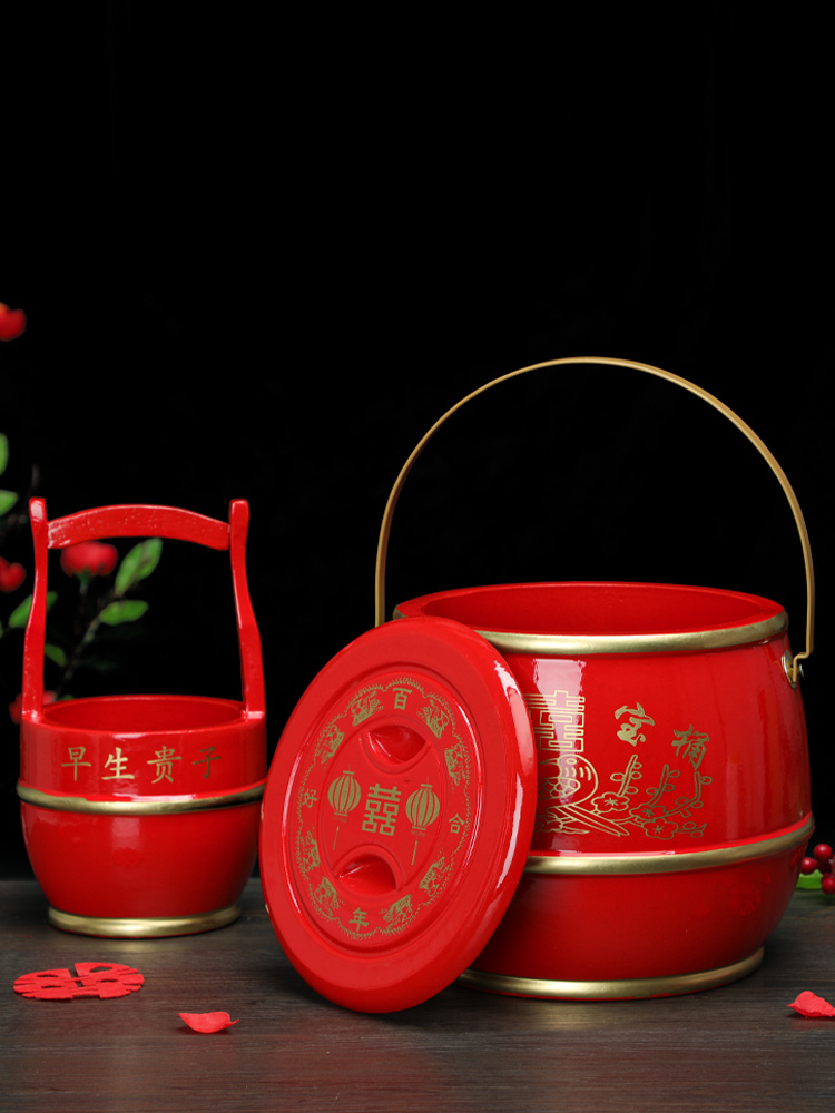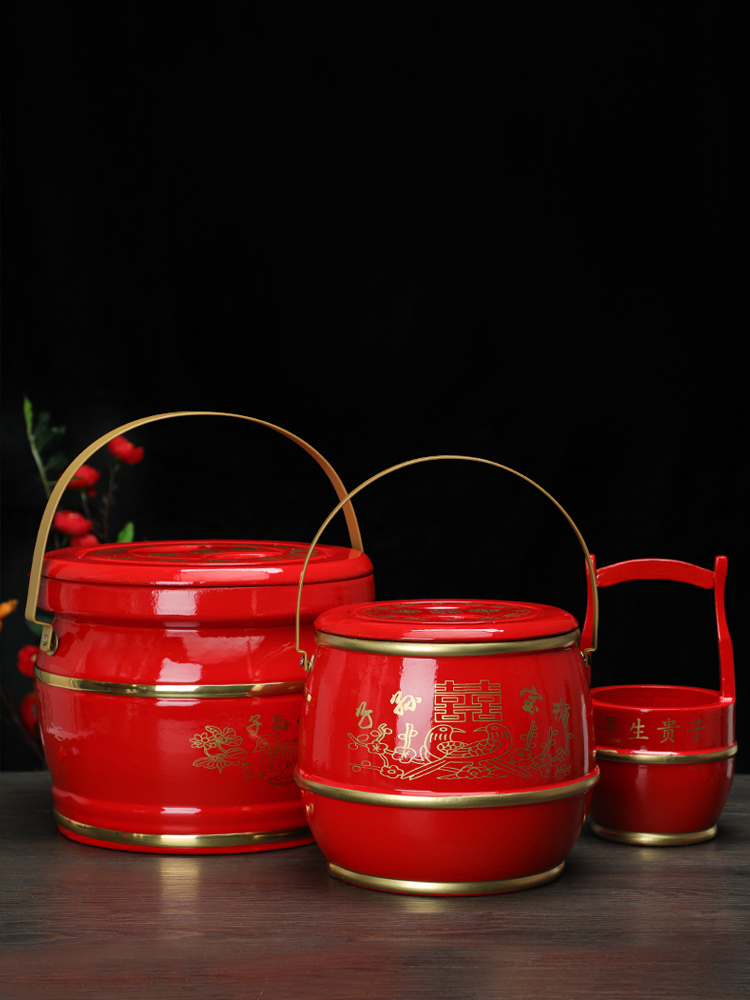 Red Wood Descendants Treasure Bucket Wedding Bride Home Accompanied By Wedding Bride to celebrate three sets of large number of Festive Barrels of Festive Barrels-Taobao
