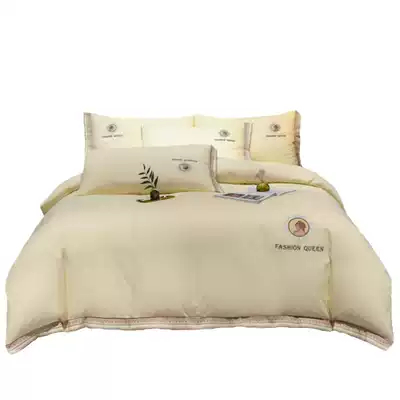 Three-dimensional embroidery four-piece cotton Princess wind nude sleeping quilt cover bed sheets do not ball, do not fade solid color girl students