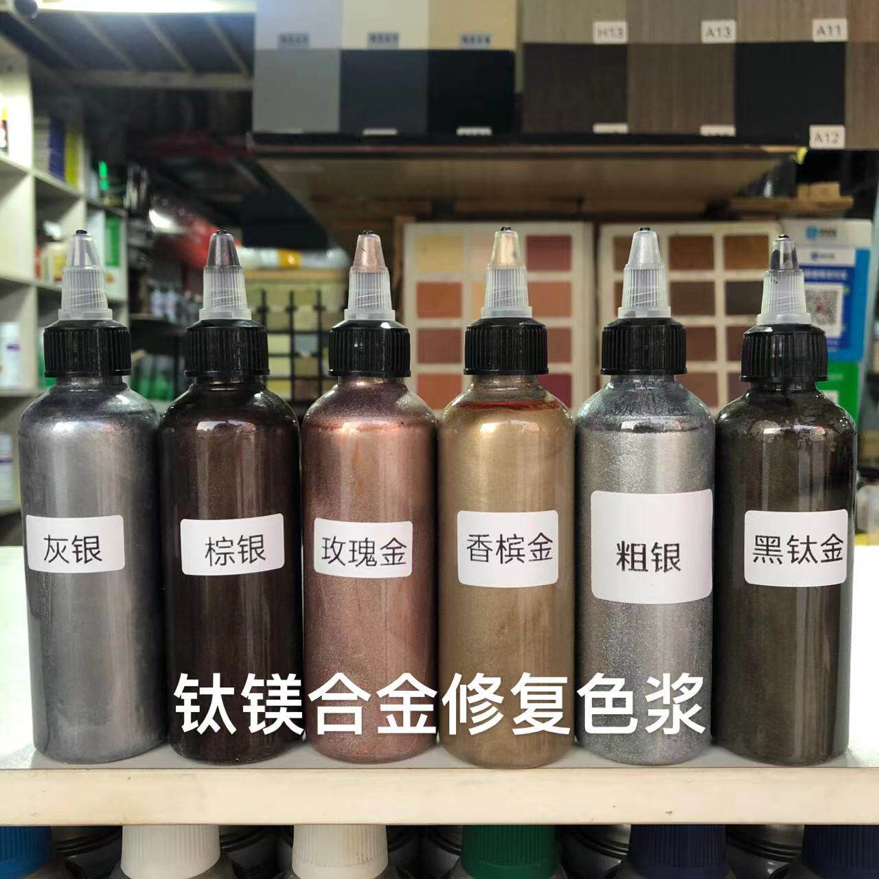 Titanium-magnesium alloy copper door repair color paste set brown silver 100ml champagne gold 100ml rose gold 100ml coarse silver 100ml gray silver 100ml