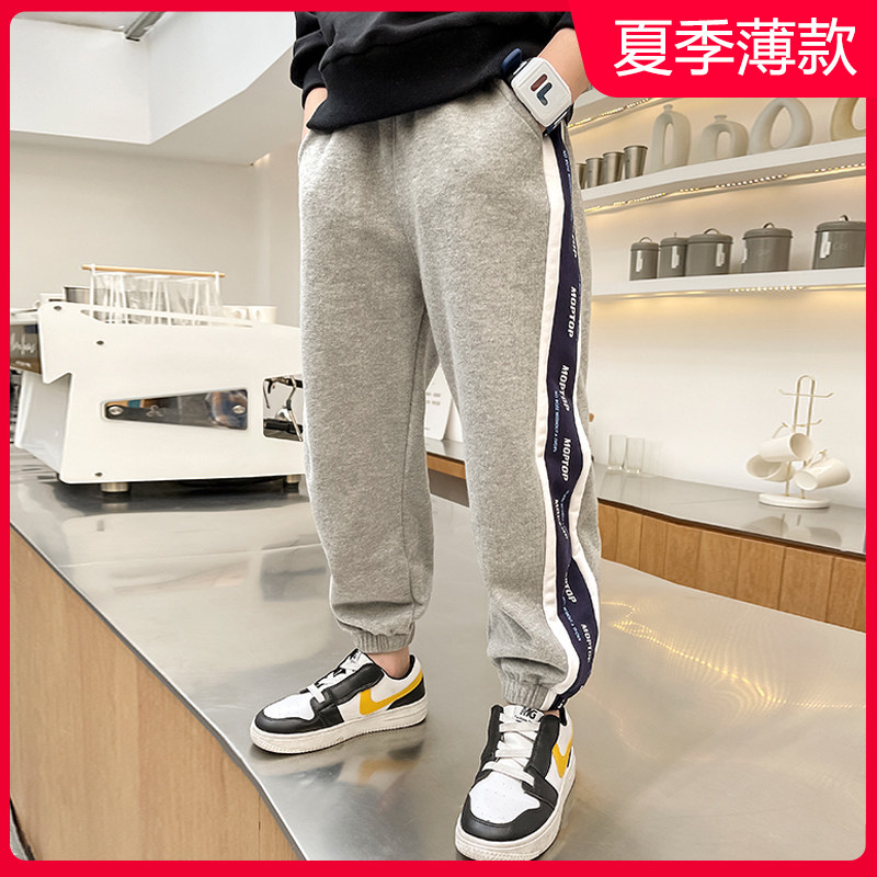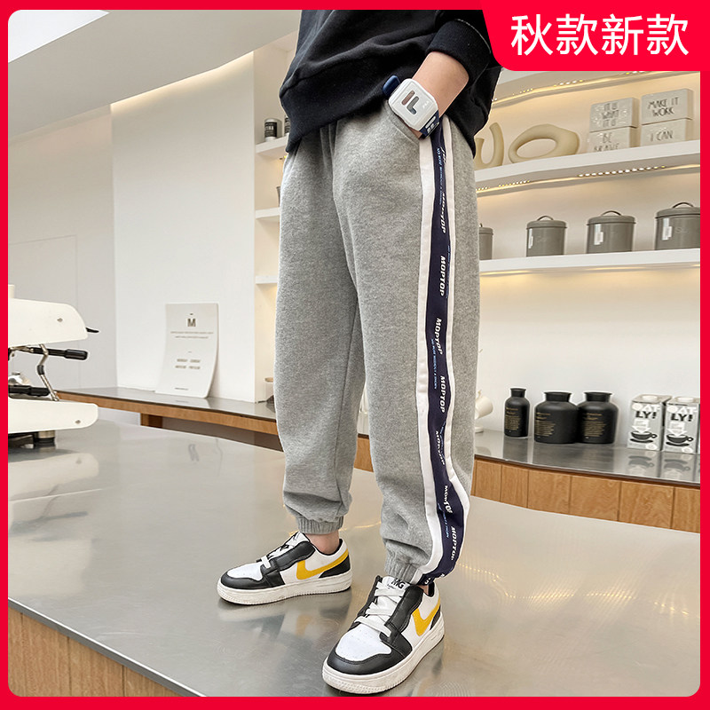 Boys' handsome pants 2022 new middle and large children's plus velvet thick handsome sports pants children's loose tide autumn and winter clothes