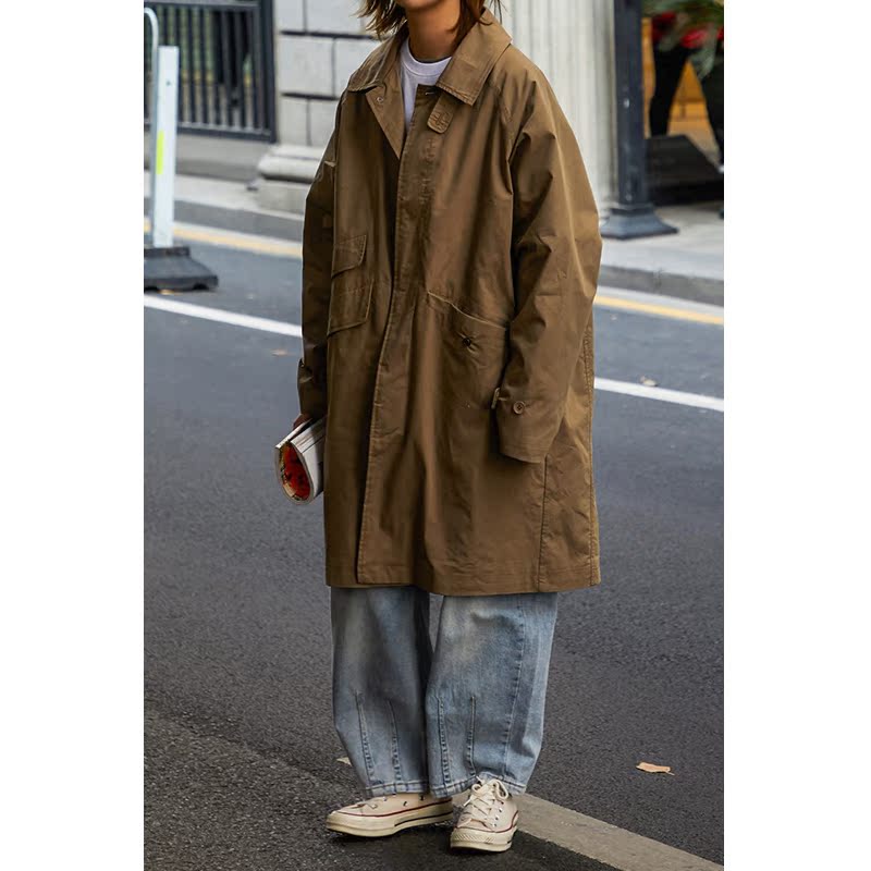Zakka Japanese Tide Brand Retro Loose Medium and Long Shoulder Coat Simple Solid Color Casual Coat for Young Men and Women