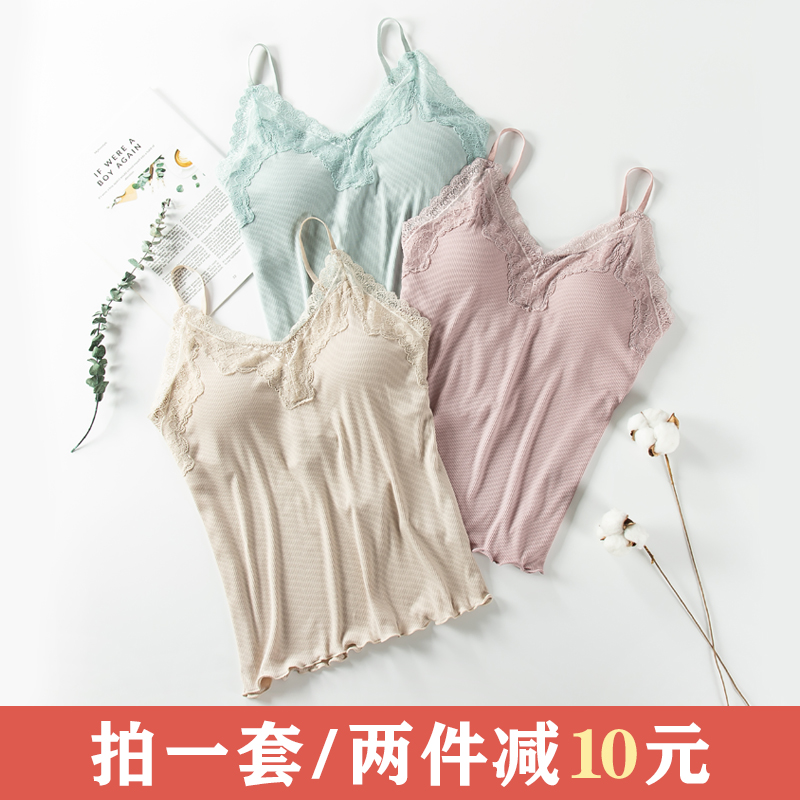 Summer modal lace camisole women's pajamas one-piece underwear shorts with chest pad one-piece household clothing