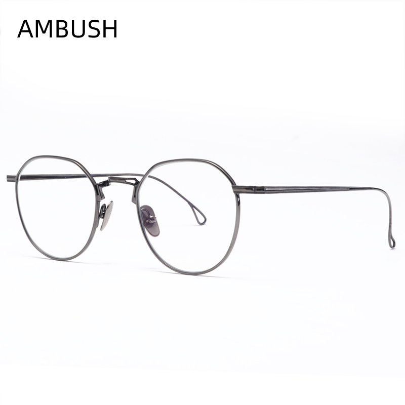 AMBUSH retro pure titanium glasses frame male Japan and South Korea fashion small circle type female do not clip face gun color anti-blue light TH9042