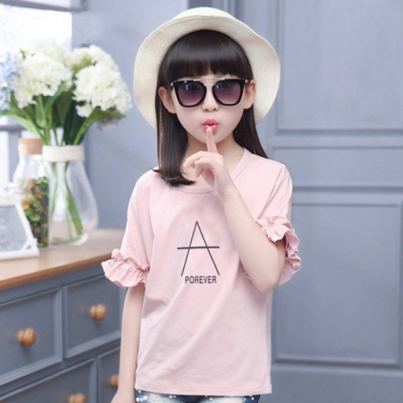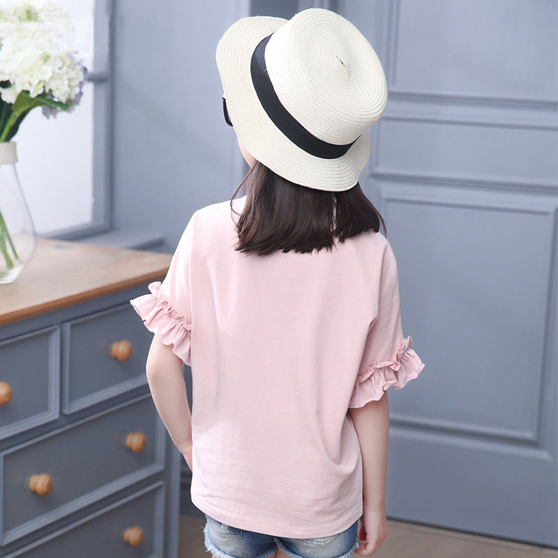 Girls short sleeve T-shirt 5-15 years old 8 summer 9 children 10 little girls 11 cotton 12 bottoming shirt 13 clothes 14
