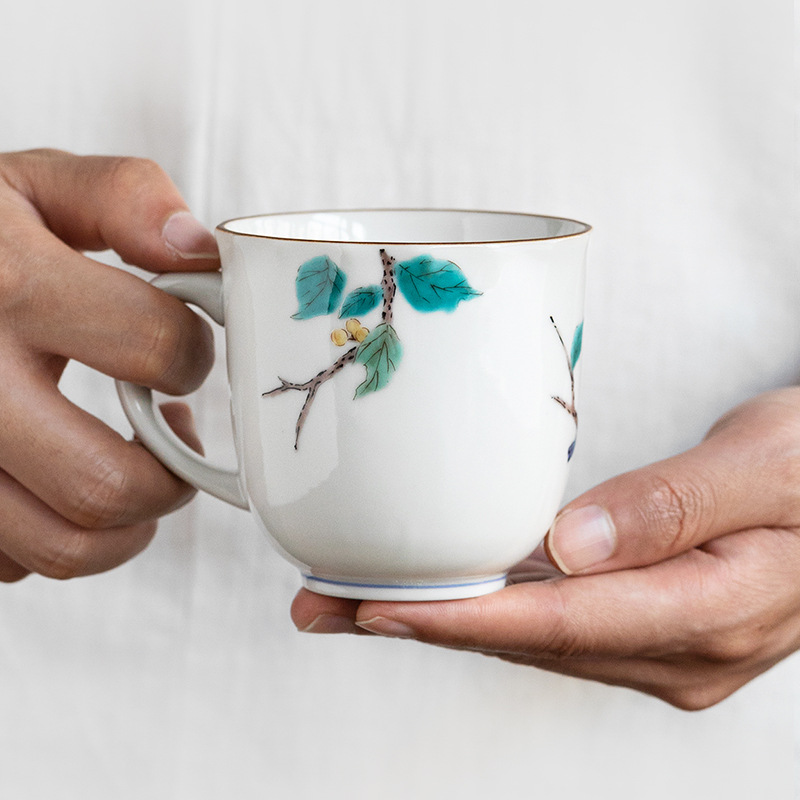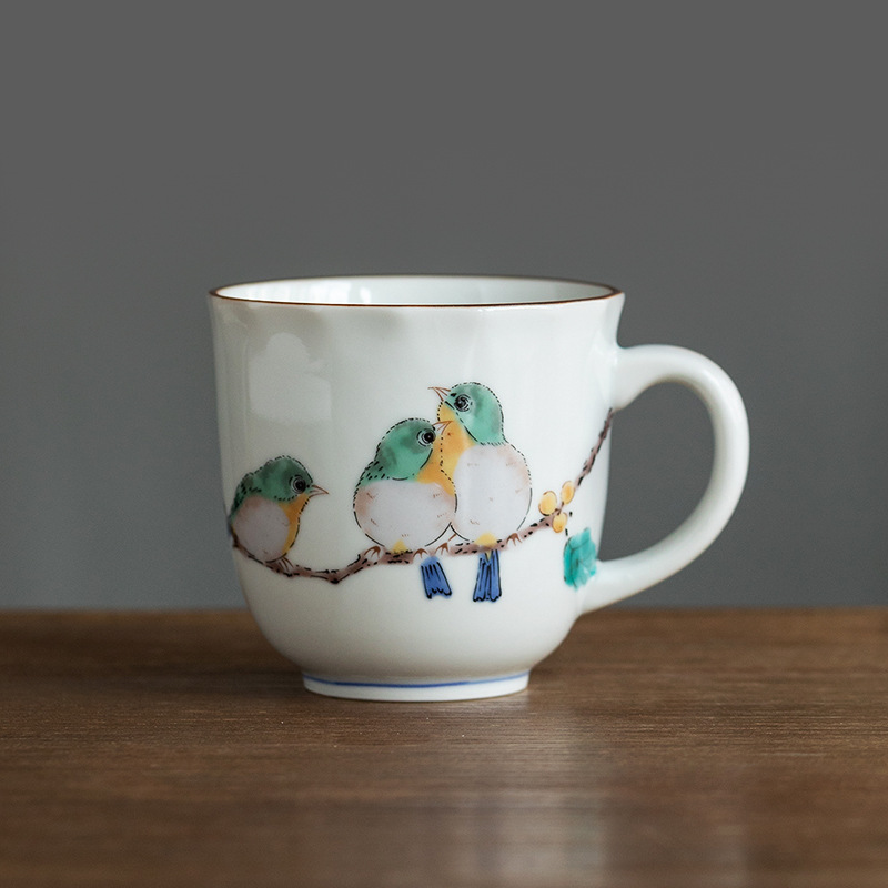 Spot Japan Imports Nine Valley Fever Embroidered Bird Ceramic Cup Cup Cup Tea Cup Daily Cup Coffee Cup Home Mark Cup