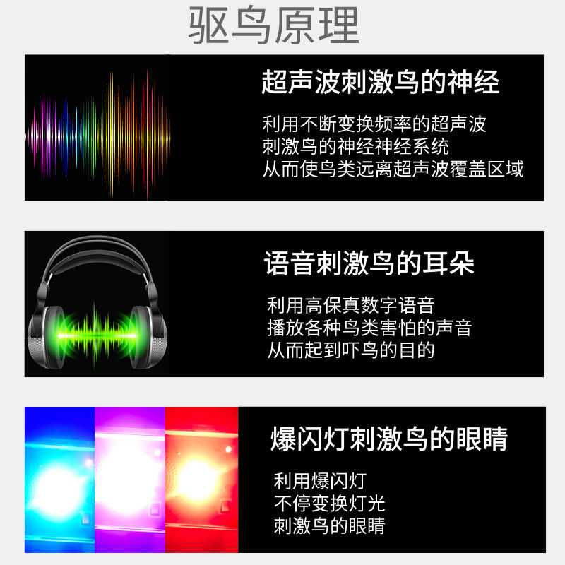 Solar ultrasonic bird repellent artifact bird catcher outdoor bird-proof warehouse granary factory orchard tree automatic bird repellent
