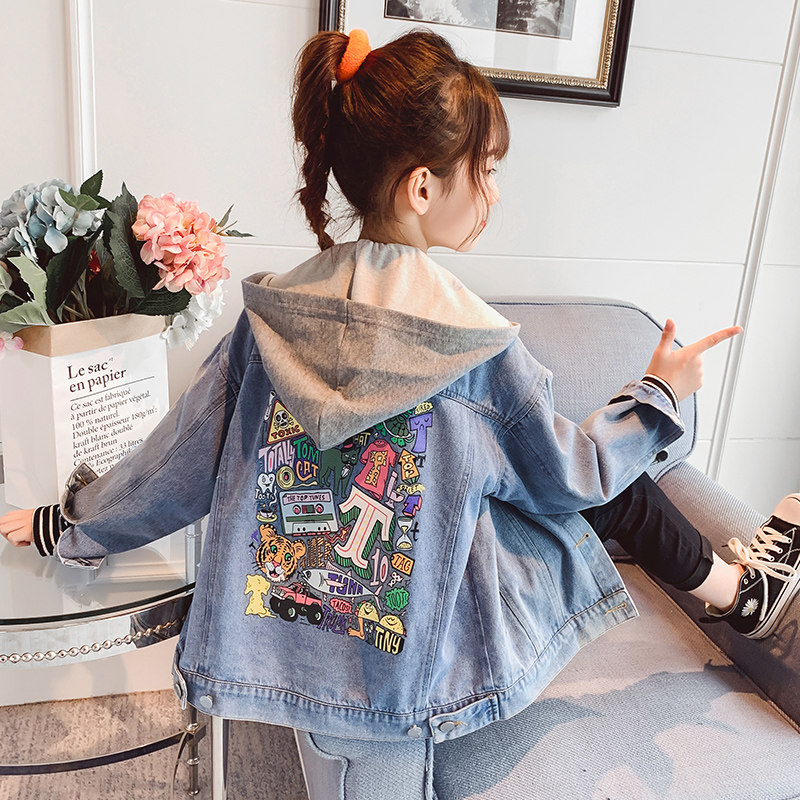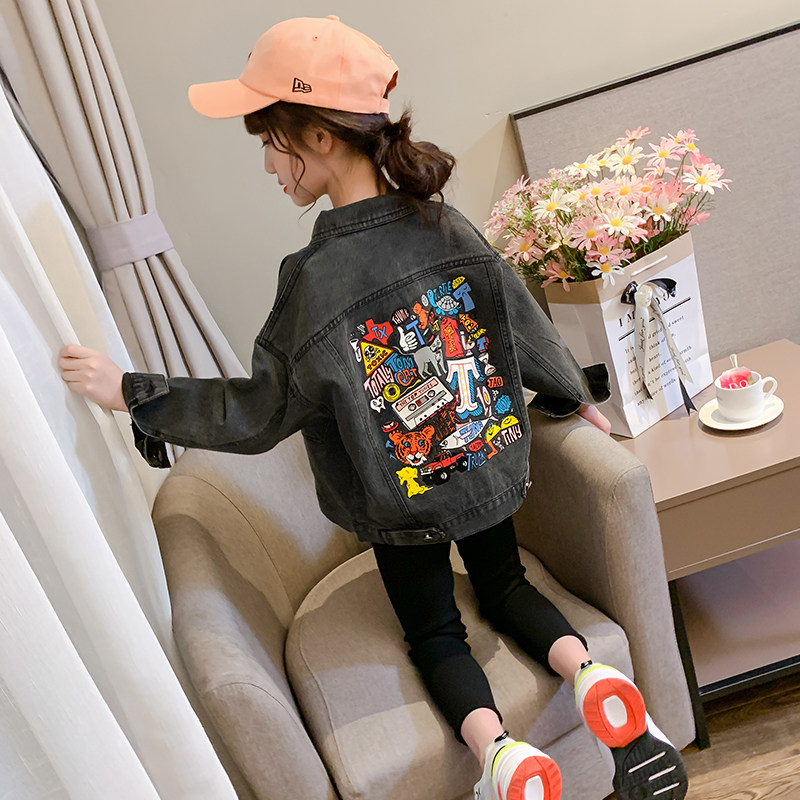 Girl Denim Jacket Spring Autumn New CUHK Child Loose Graffiti Children Jacket Trendy Foreign Pie Girl Blouse Tide