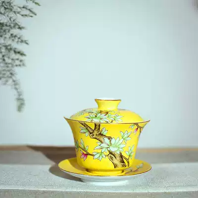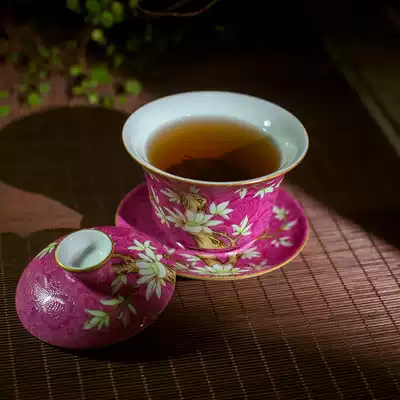 Jingdezhen hand-painted flower color glaze tea cup tea cup tea cup three-style bowl female tea bowl tea owner Cup