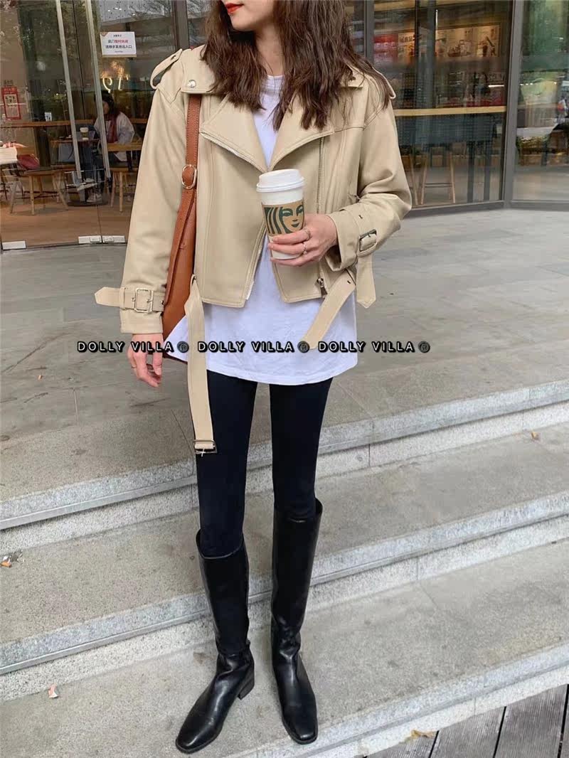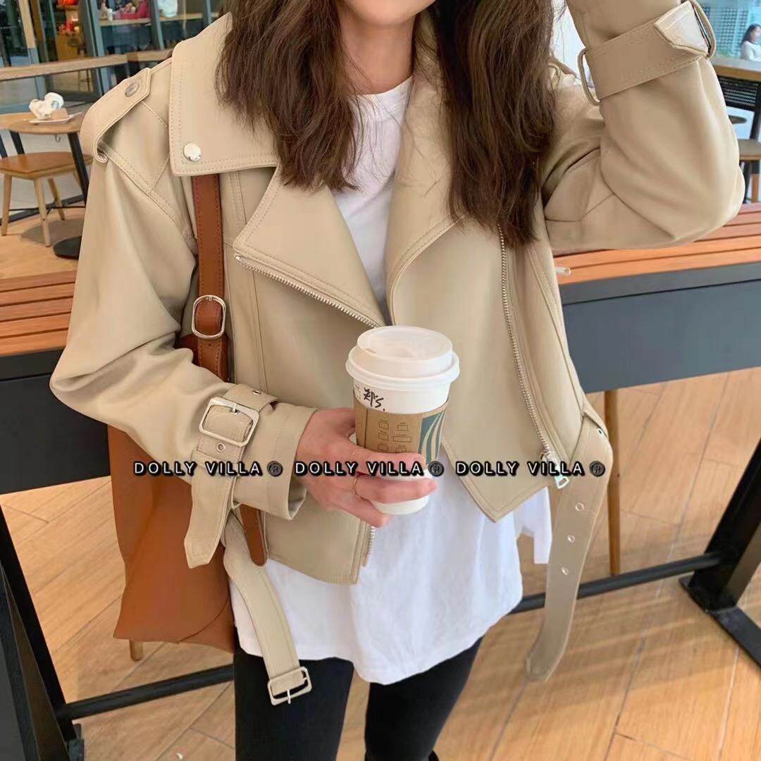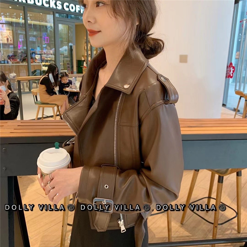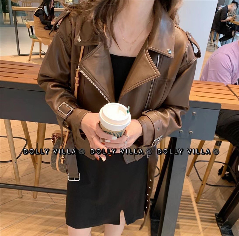 2021 Spring new Korean version Relaxed Casual Fashion Temperament High Quality Pu Leather Jacket Cappelled Machine Leather Jacket Woman