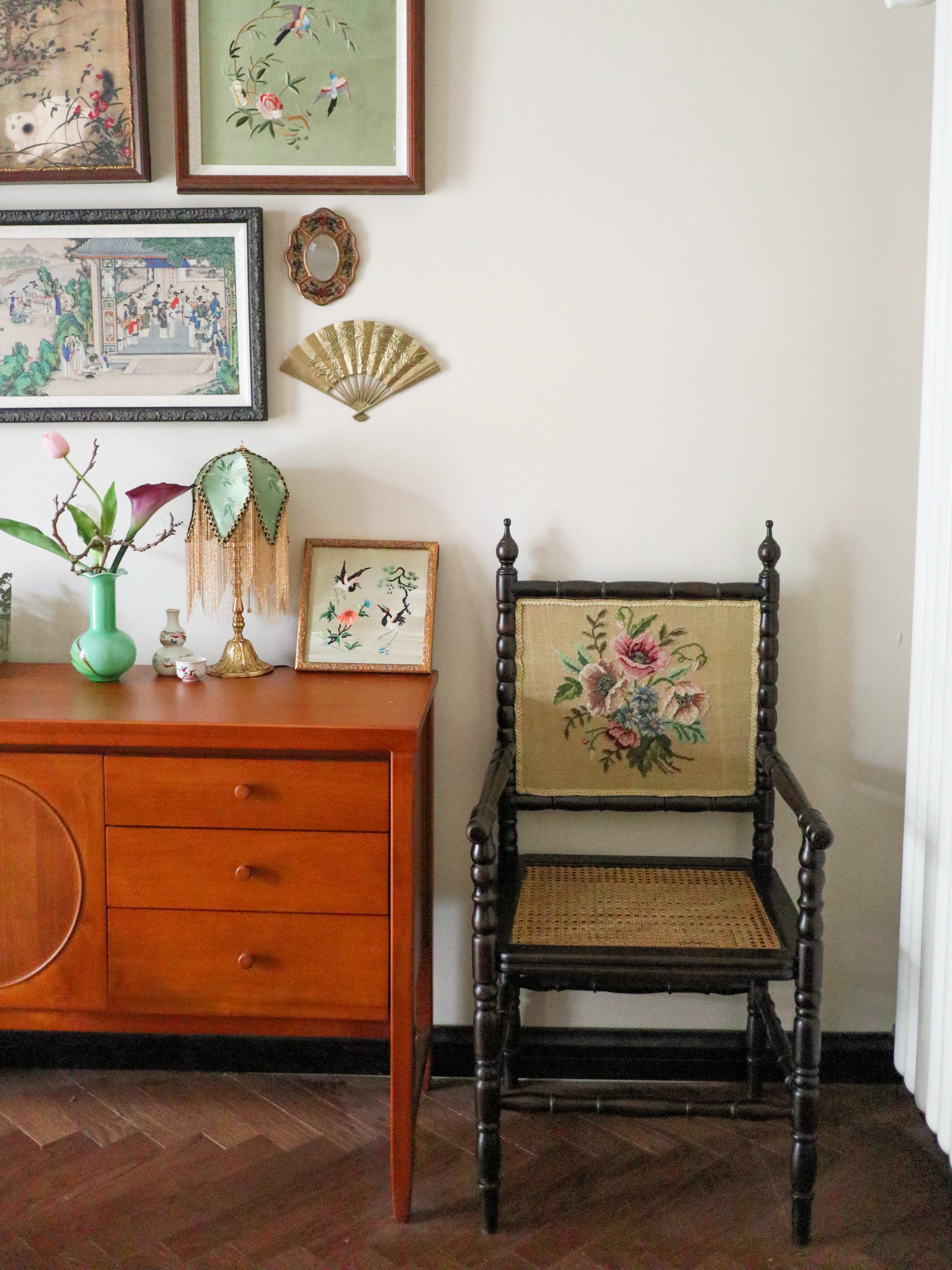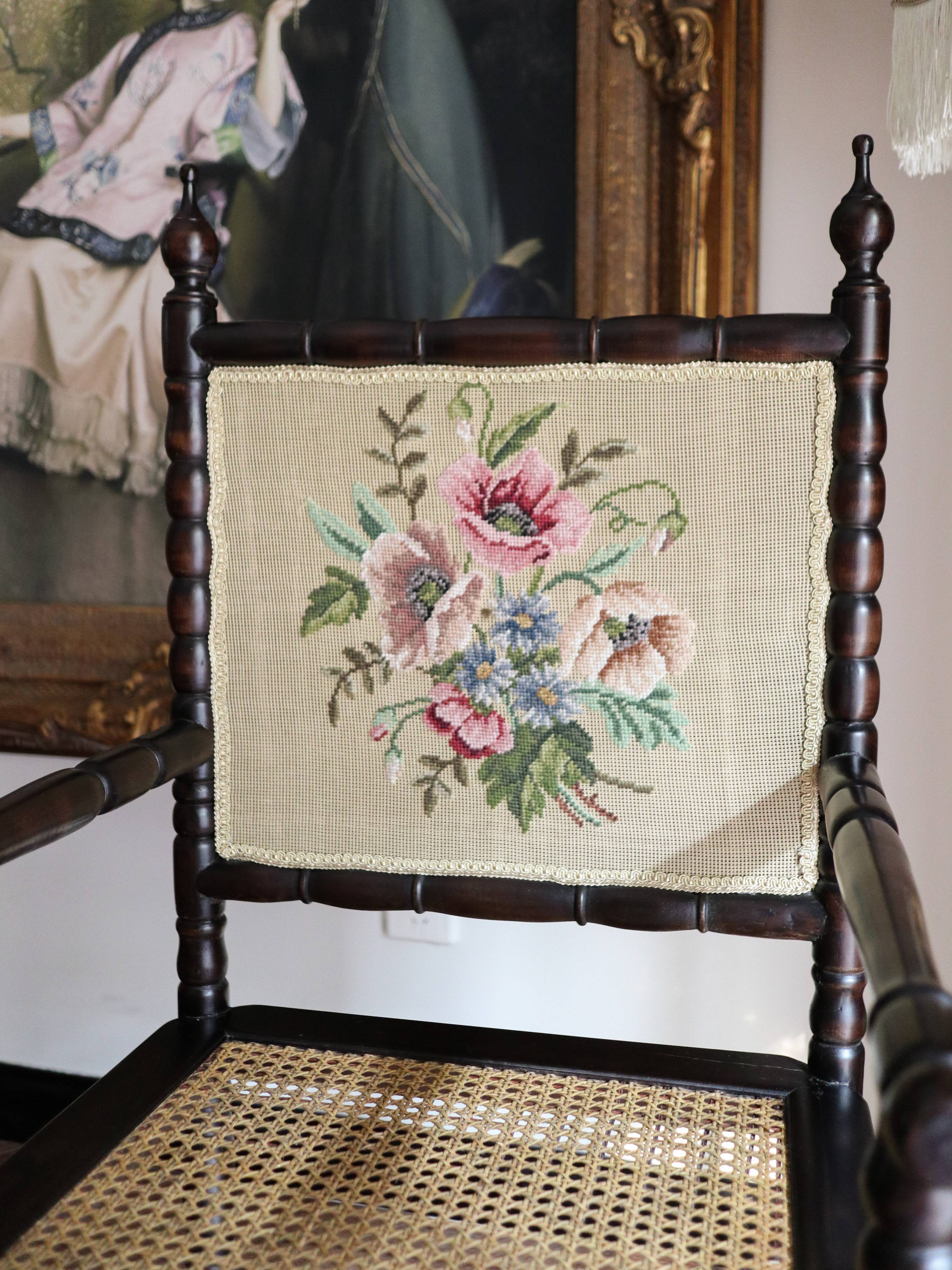 Antiquity and Aesthetics {Flower Room} Vintage Style Rattan Chinese Style Retro Embroidery Pattern Single Solid Wood Chair