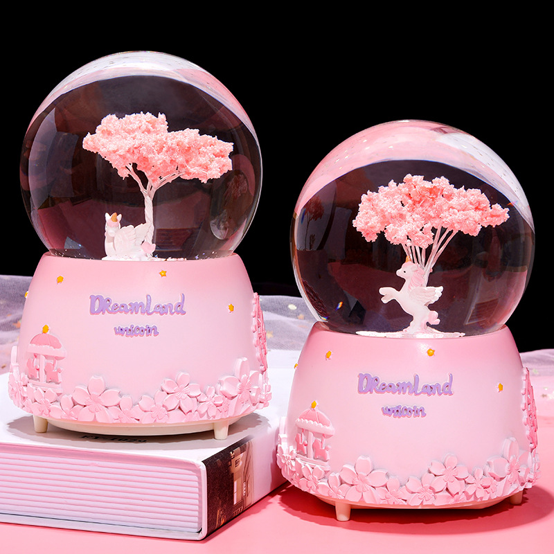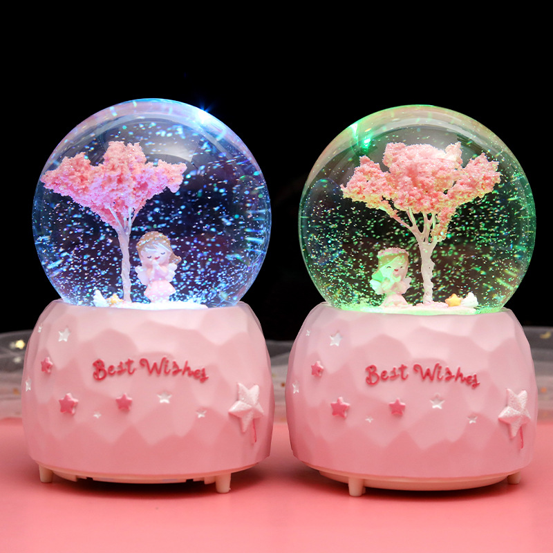 Luminous rotating snowflake crystal ball Children's Music Box Girls music box ornaments girlfriend boyfriend birthday gift