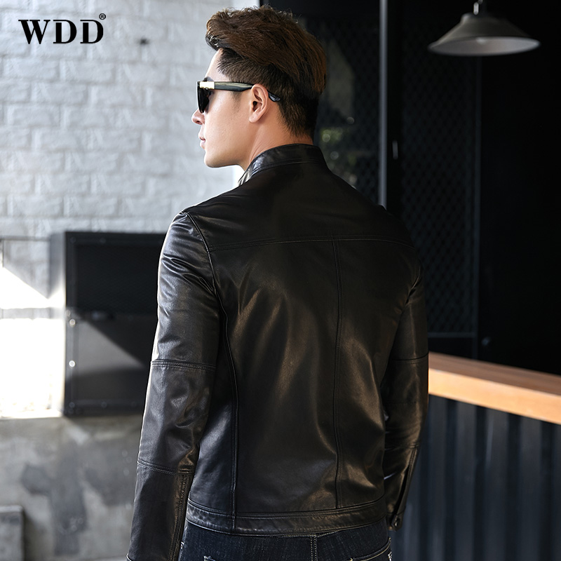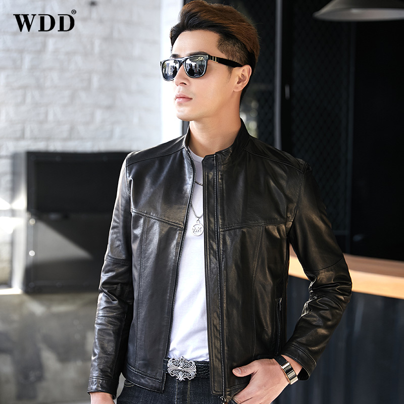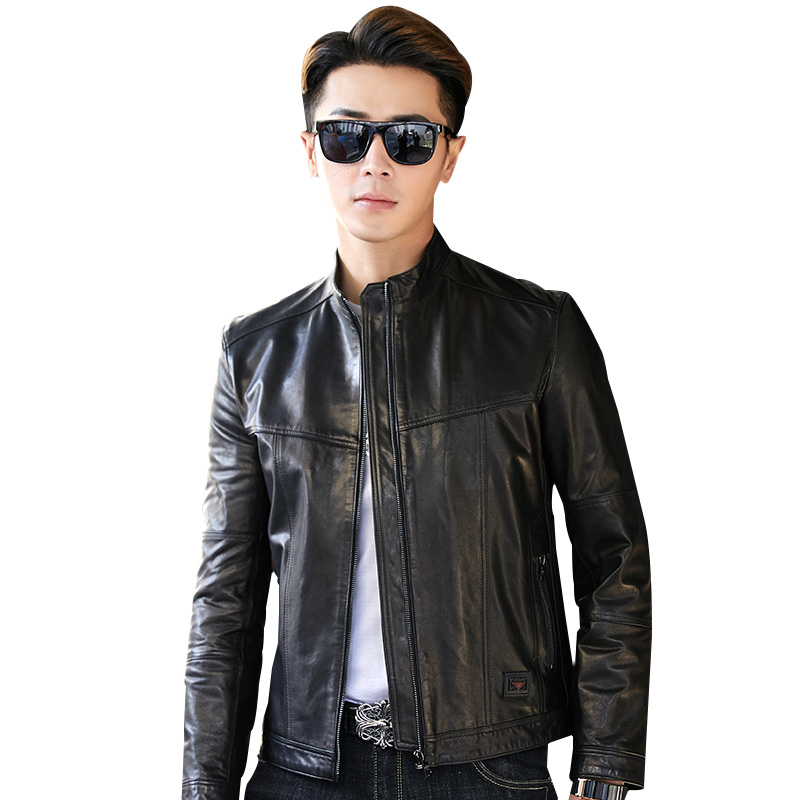Haining genuine leather jacket men's short stand collar goat leather jacket slim fit motorcycle suit handsome youth autumn and winter jacket tide