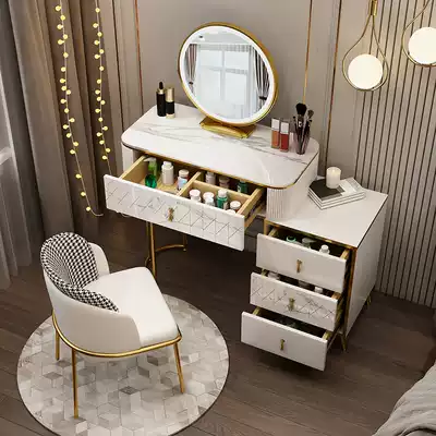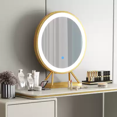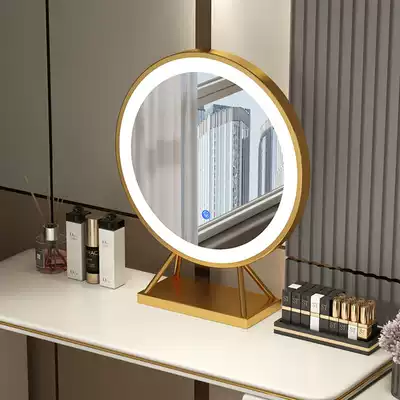 Nordic smart mirror with light makeup mirror led mirror adjustable rotating three-color light multifunctional mirror iron art
