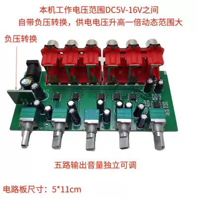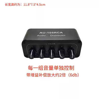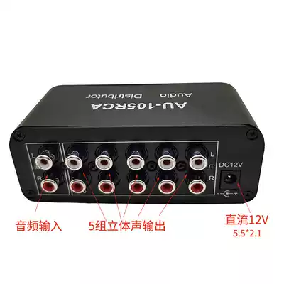 Stereo audio and audio source distributor two-channel one input five-way output drive multiple power amplifiers one drag more