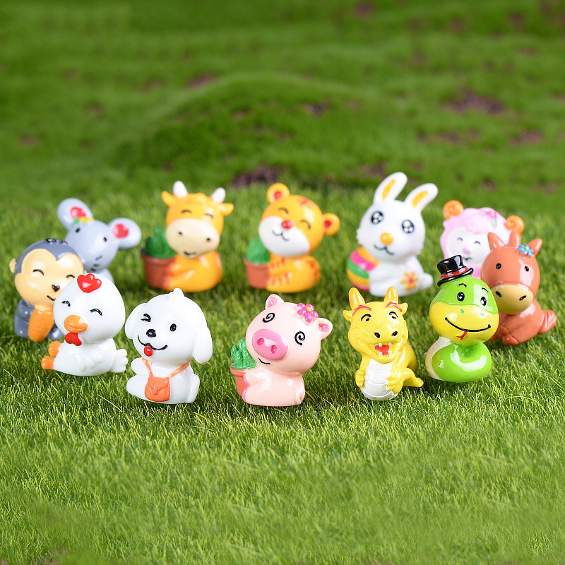12 Zodiac Animal Dolls Children's Home Small Paradise Dessert Table Birthday Baking Cake Decoration Decoration Plug-in