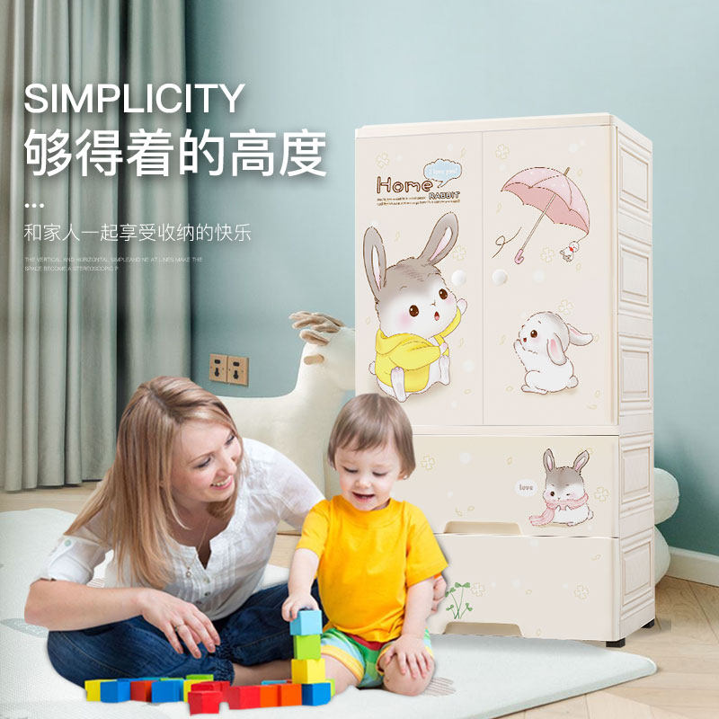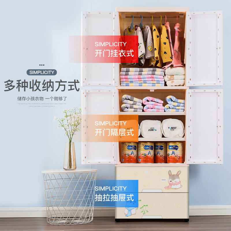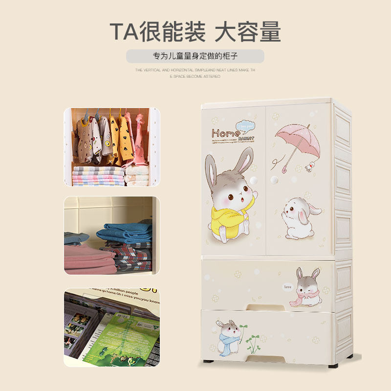 Thick hanging clothes double door storage cabinet plastic drawer locker baby cartoon baby baby children's simple wardrobe