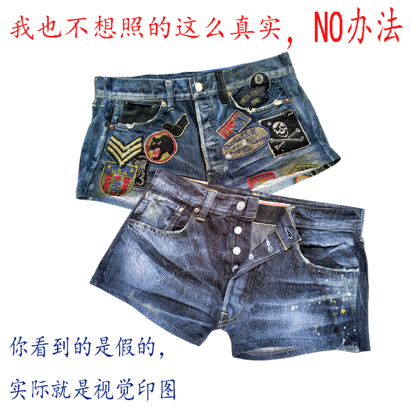 Street thin blue high-elastic shorts female image lifelike printed sexy hot pants tail goods close-fitting yoga pants