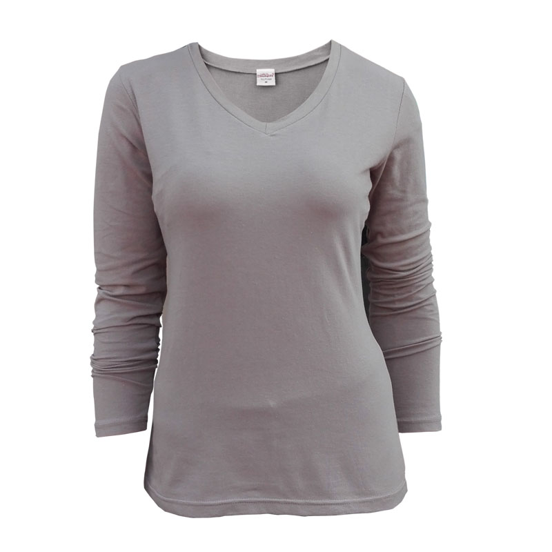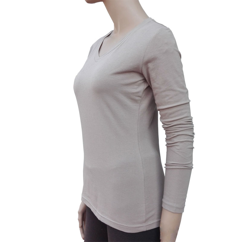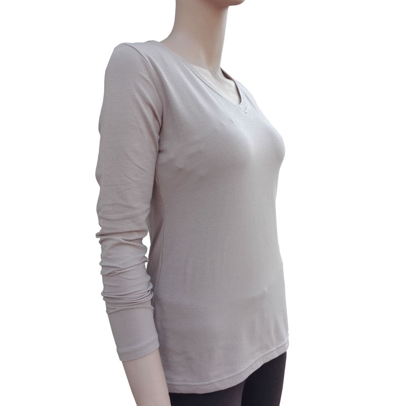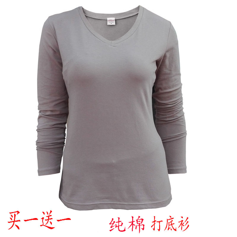 Pure cotton blouse female V-collar spring sleeve with knitting T-shirt skin color thin and fit one layer of autumn clothes