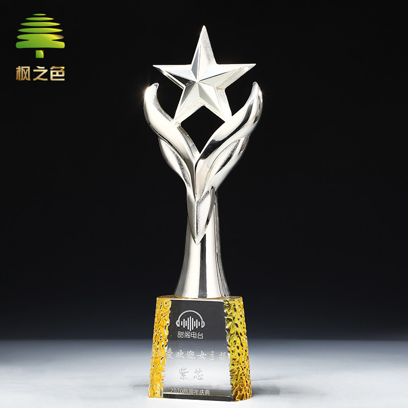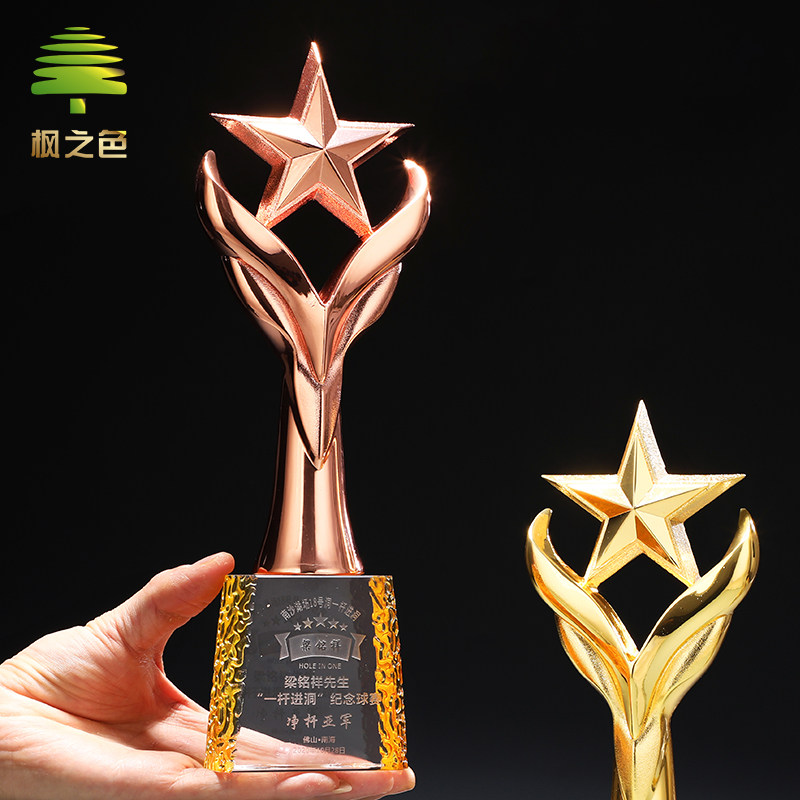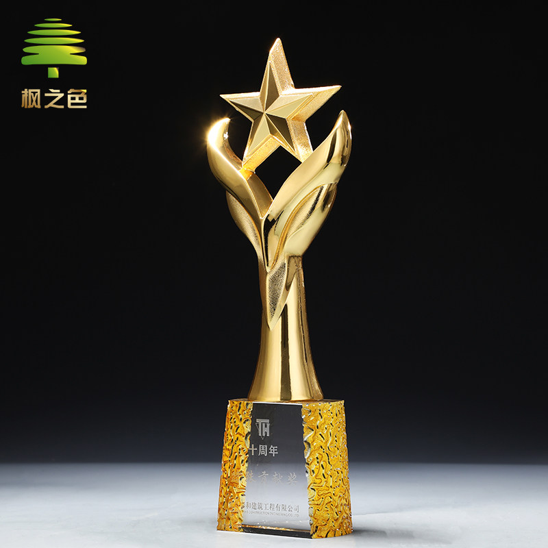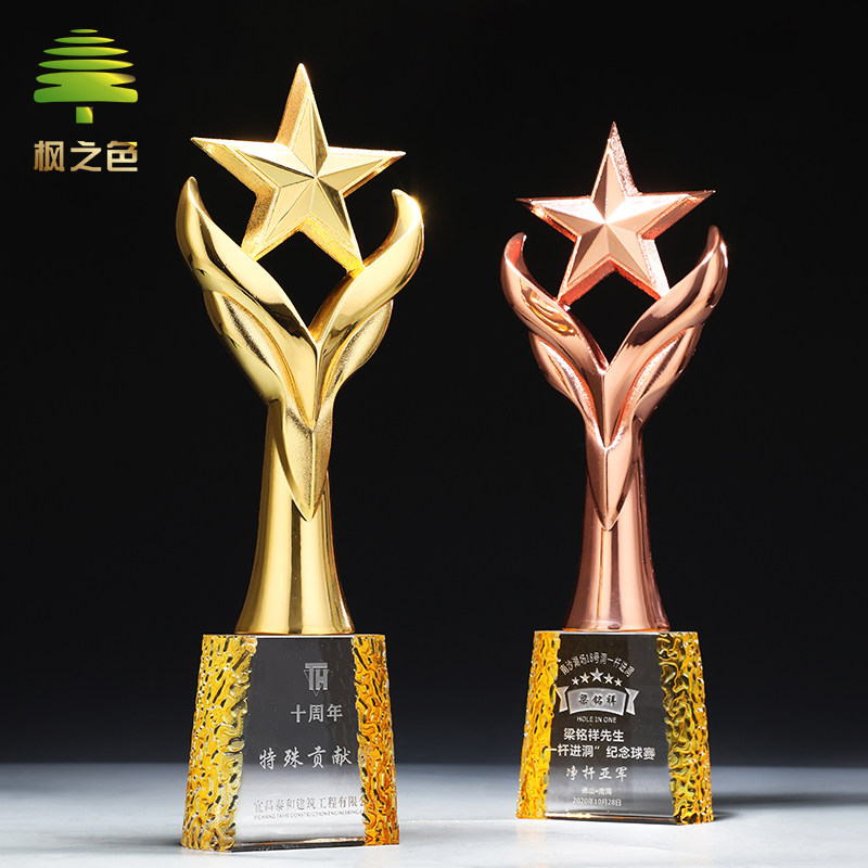 Bull Turns Dry Kun Metal Pentagram Trophy Custom Crystal Trophy Set As Bull year Golden Bull Annual Meeting Lettering Gold And Silver Copper
