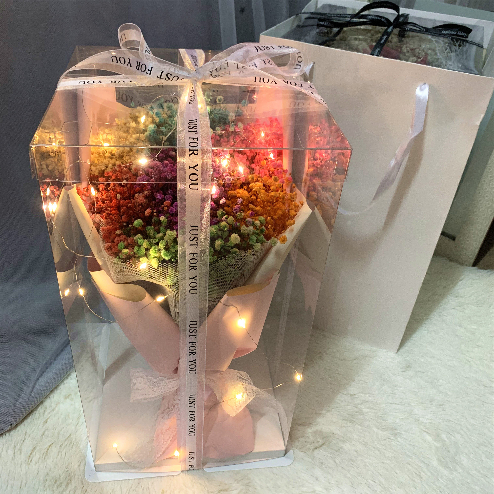 Large lamp white starry 9 flower gift box tote bag Large lamp Pink starry 9 flower gift box Tote bag Large lamp 9 candy color blue gift box Tote bag large lamp White starry sunflower gift box