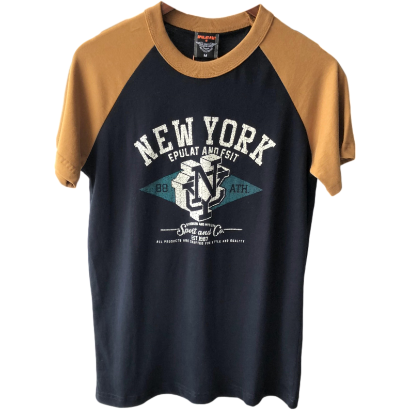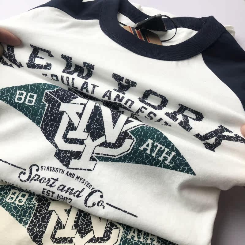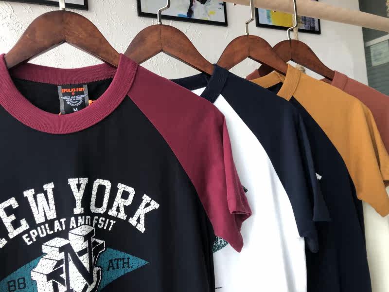Foreign trade tail single retro printed cotton raglan sleeves short-sleeved sweatshirt men's comfortable casual loose American stitching T-shirt