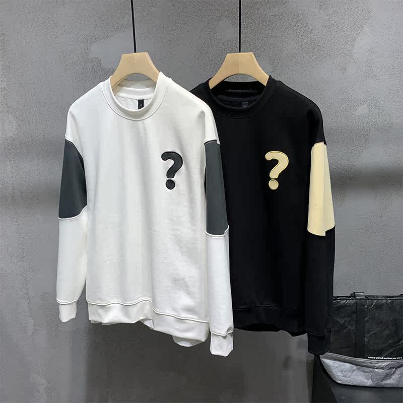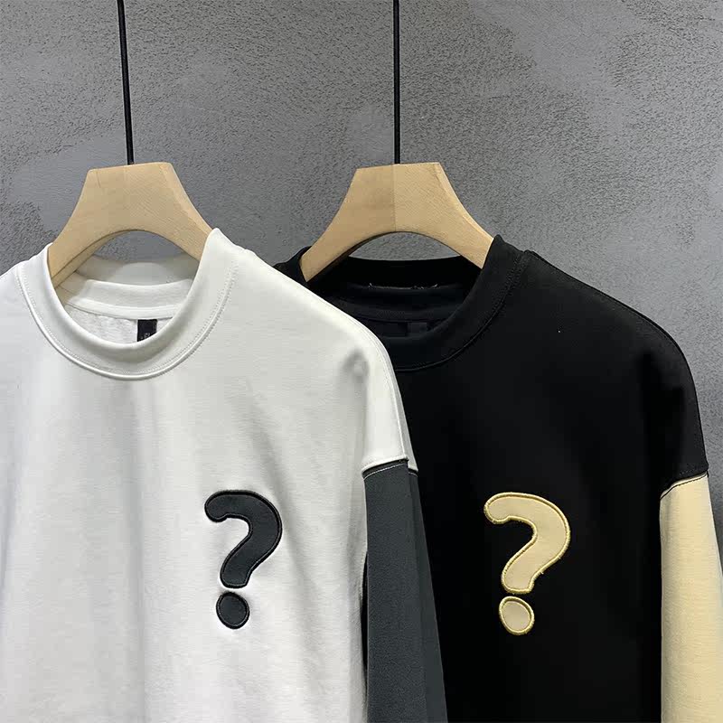Net celebrity back print thick cotton T men's spring chic Hong Kong style handsome loose casual ins trend all-match top