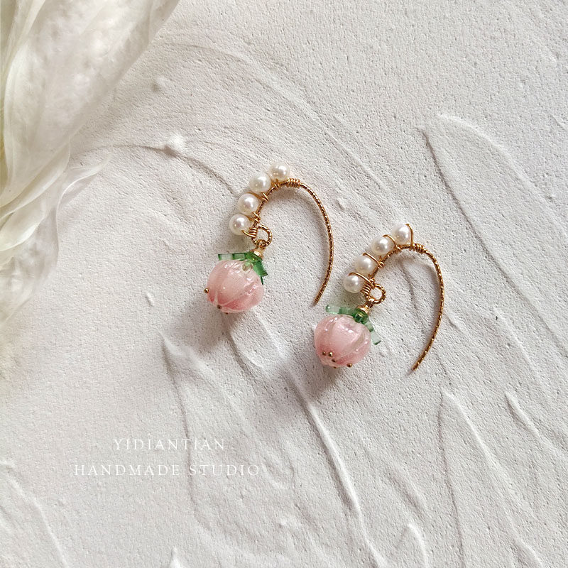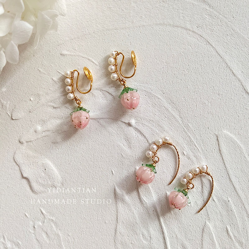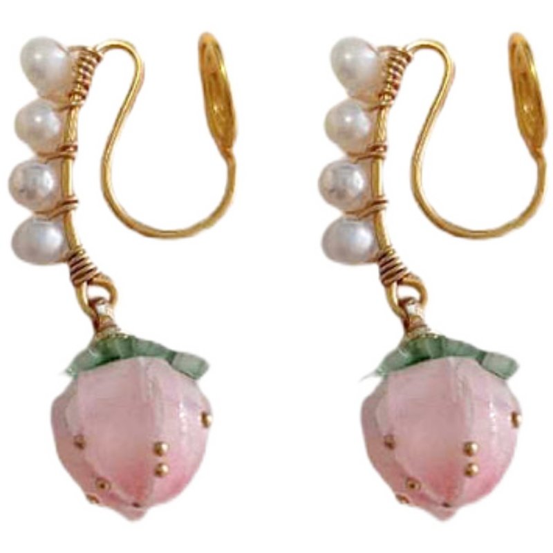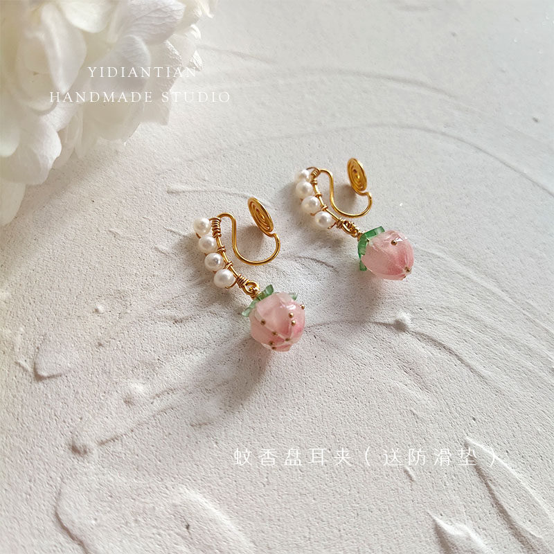 lace without ear holes hand-wound sweet strawberry freshwater pearl pink peach mosquito coil ear clip ear hook female