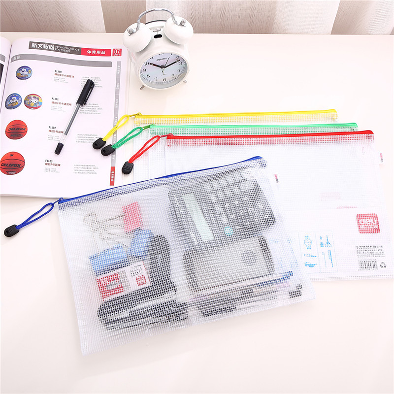 Powerful 5654 zipper bag pull side bag document bag transparent waterproof plastic mesh bag A4 test paper bag 10 packs