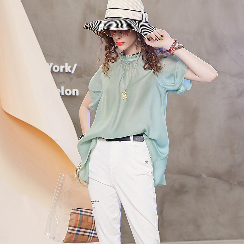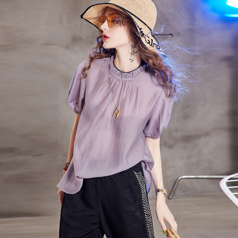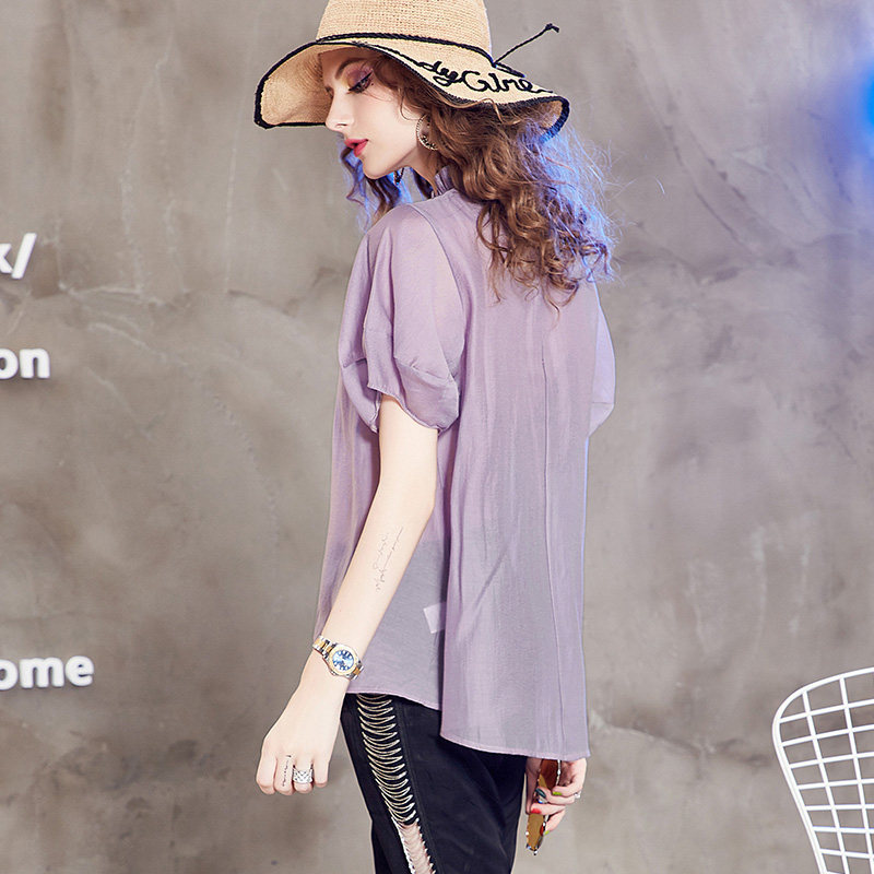 European goods large version short-sleeved women's 2022 spring new loose fashion all-match thin irregular lace T-shirt top