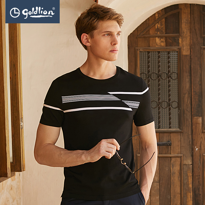 Jinlili Men's Summer Thin Knitted Casual Short Sleeve T-shirt Striped Multi-color Fashion Slim Crem Neck