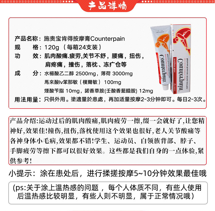 Thailand official original Squibb Kende Counterpain Tumbling sprain joint pain Massage Cream 120g