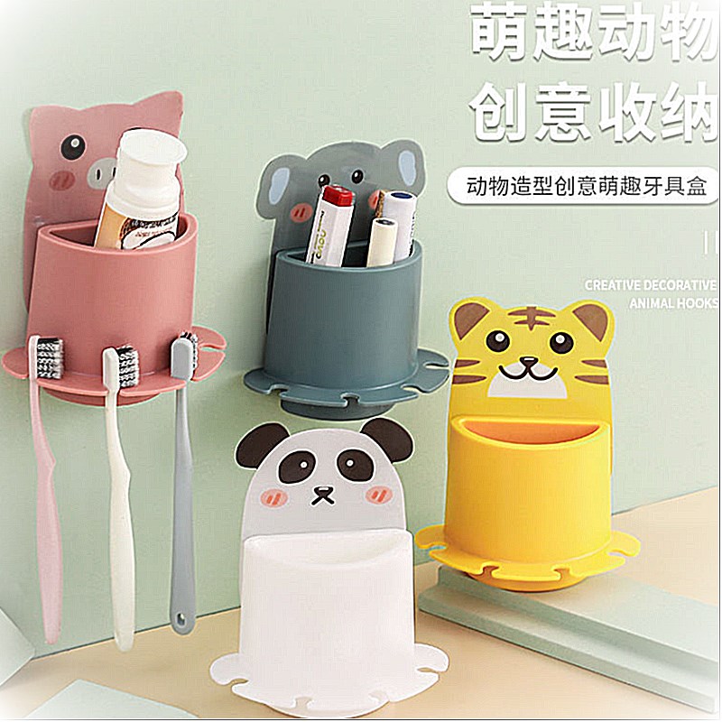 Toothbrush Rack Shelve Cartoon Animal Toothbrush Rack Bathroom Free of perforated Free Adhesive Toothbrush Seat Wall-mounted Shelve
