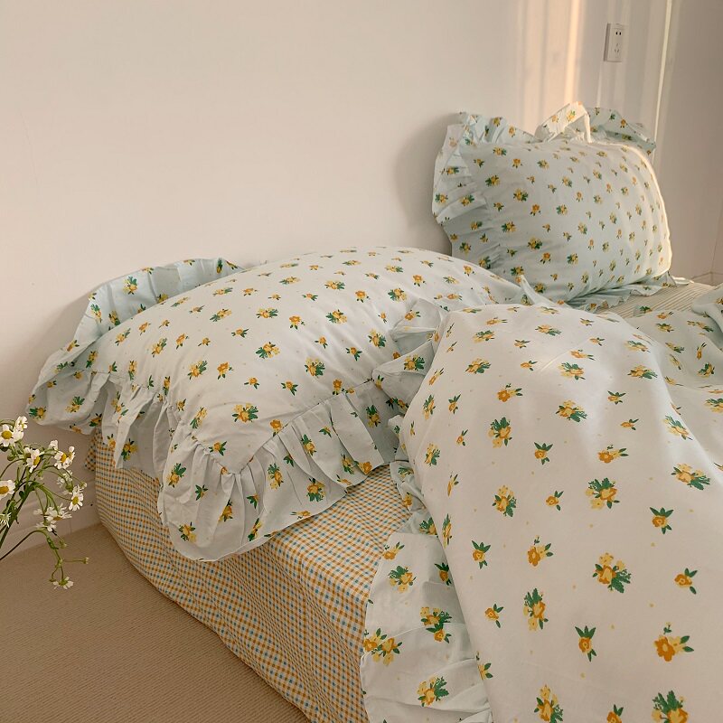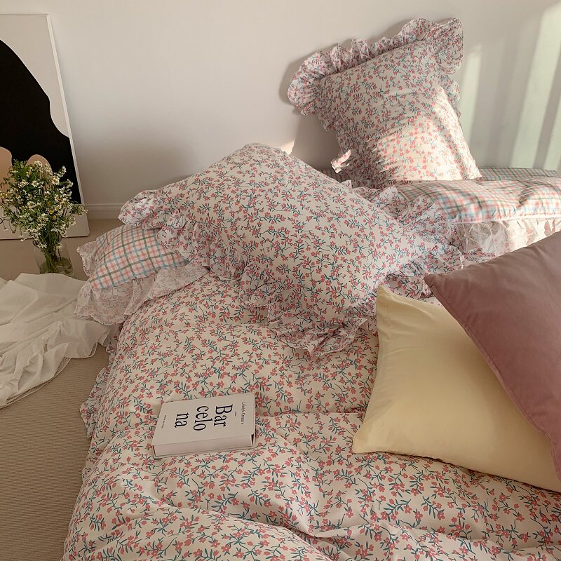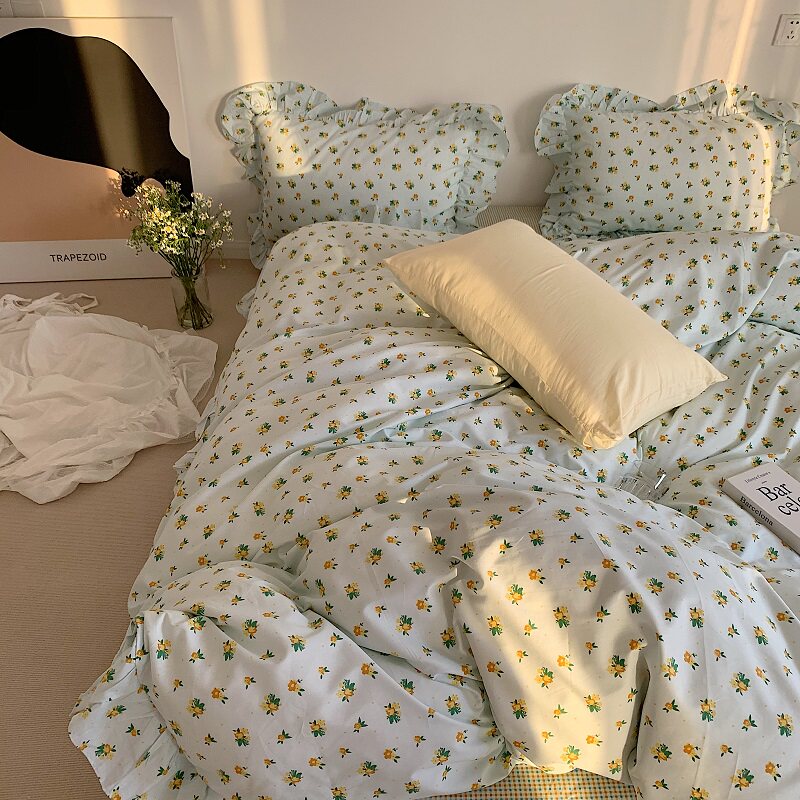 (Luhe) I like your gentle look) Girl heartbroken flower lotus leaf cotton four-piece cotton quilt cover