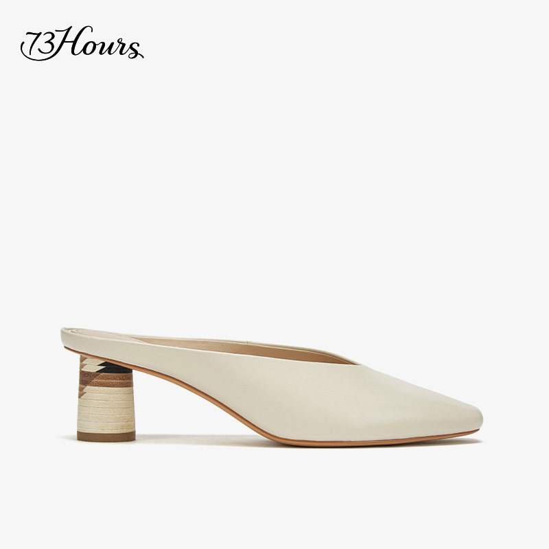 73hours women's shoes golden afternoon summer square head color-blocked column mid-heel Muller toe-toe slippers women's