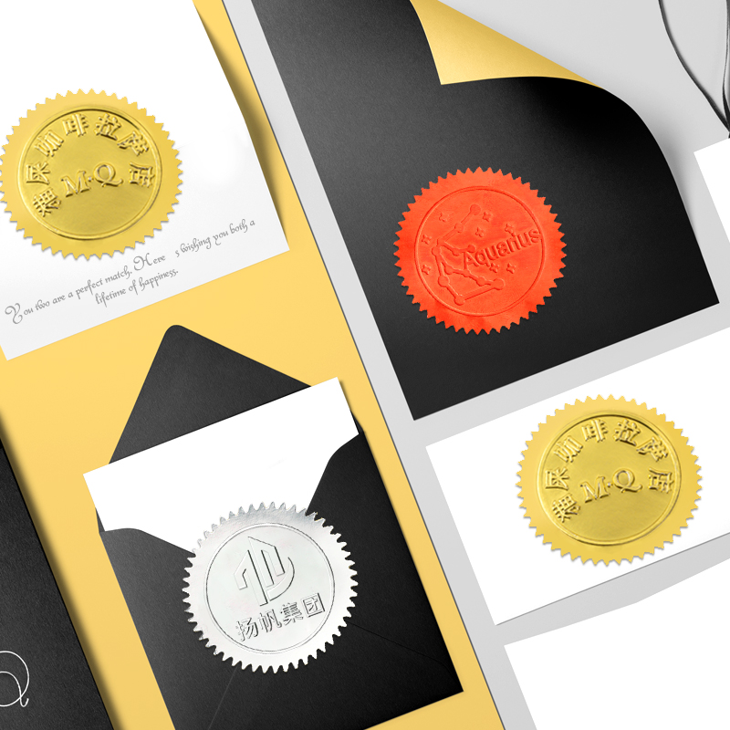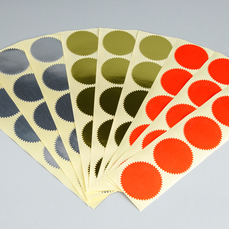 Steel printed sticker gear adhesive sticker round label paper gold and silver red color 50MM waterproof closure sticker