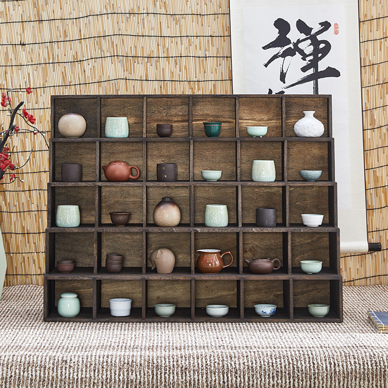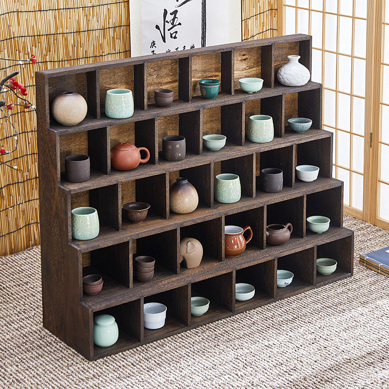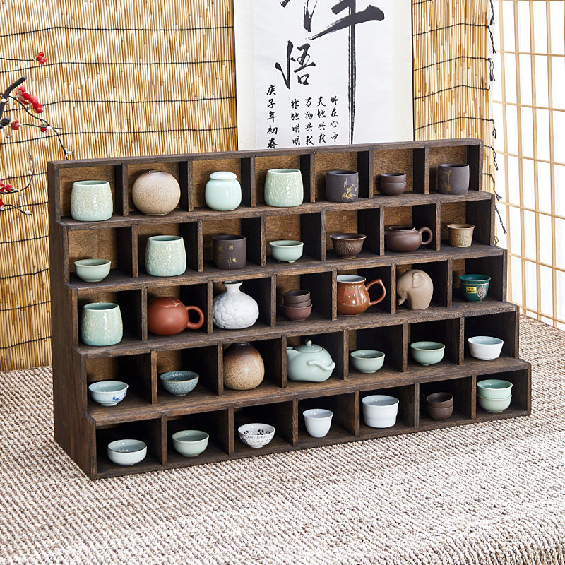 Solid Wood Tea Cup Shelf Multilayer Purple Sand Teapot Rack Bou Rack Tea Set Shelve Shelf Multi-Treasure Attic Grid Exhibition Rack