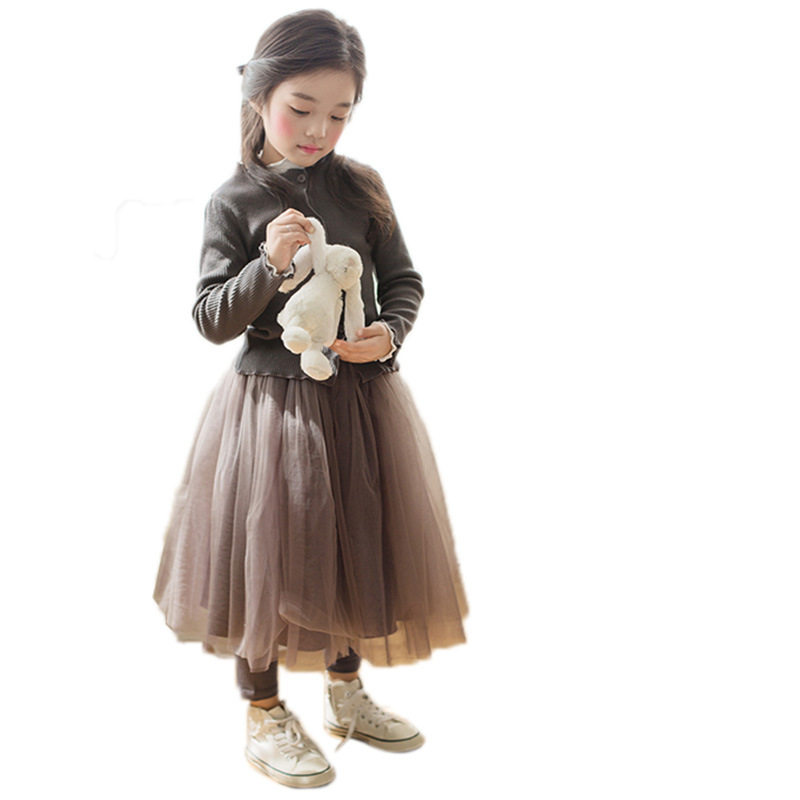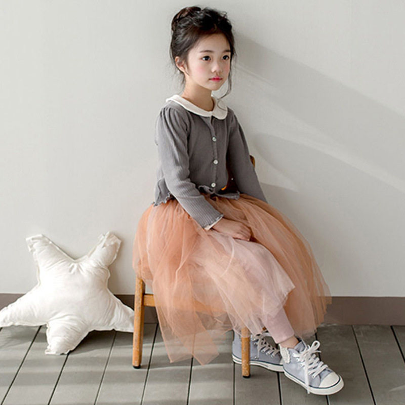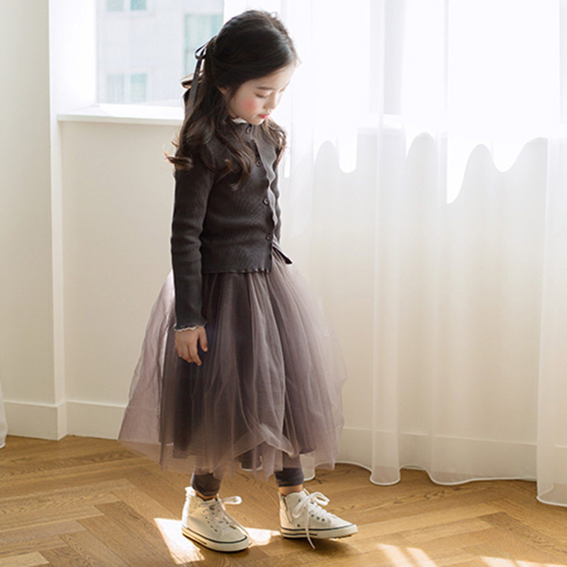 Korean version of the girl's thin cardigan spring and autumn 2021 knitted foreign air jacket pit bar fake two piece mesh skirt skirt