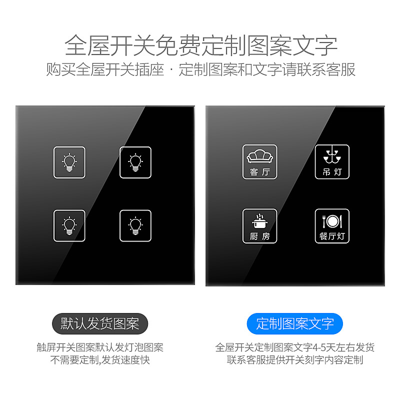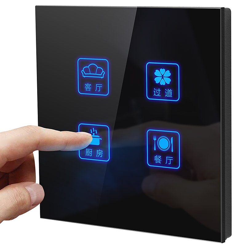 Wall socket panel Black 86 Home smart touch switch four open single touch screen LED light switch