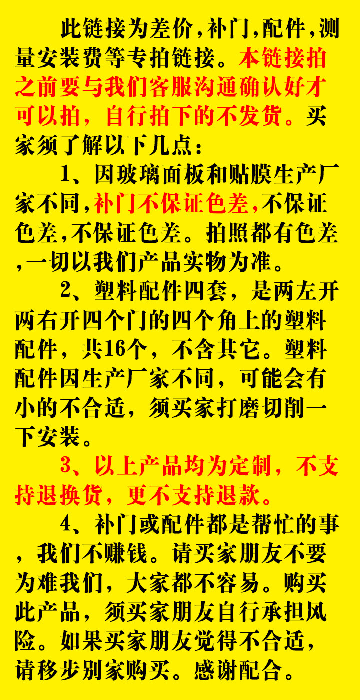 Postage supplement Differentiated Complement Door One Complement door Two complementary doors Three plastic accessories 4 sets of total 16 zining Local Measurement Andress Fee Complement Outer Frame Door Set